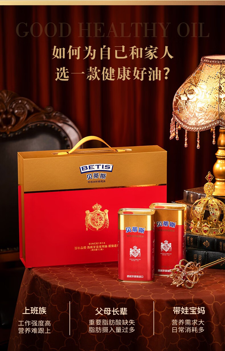 贝蒂斯/BETIS 1000*2 橄榄油 特级初榨橄榄油1L*2礼盒 西班牙原装进口 企业团购