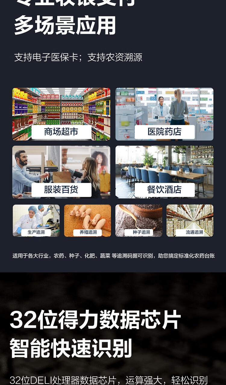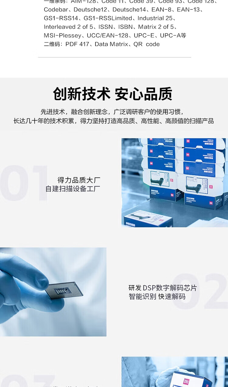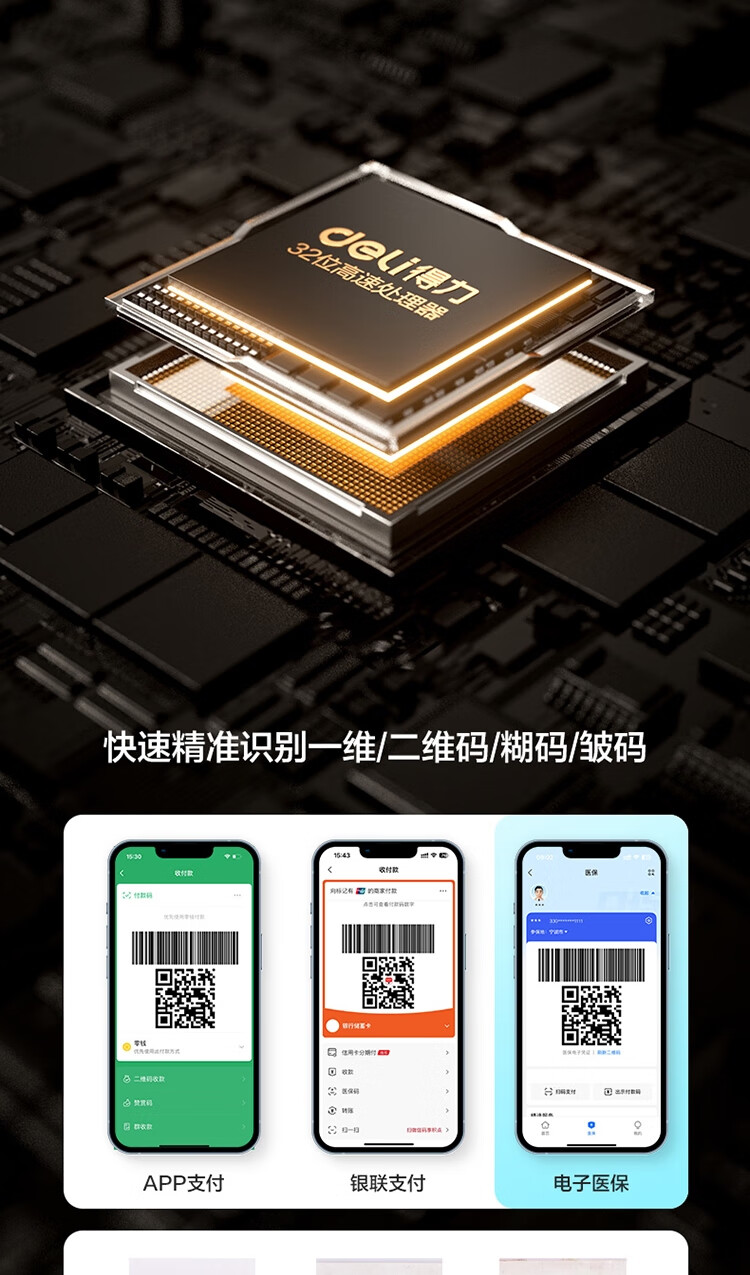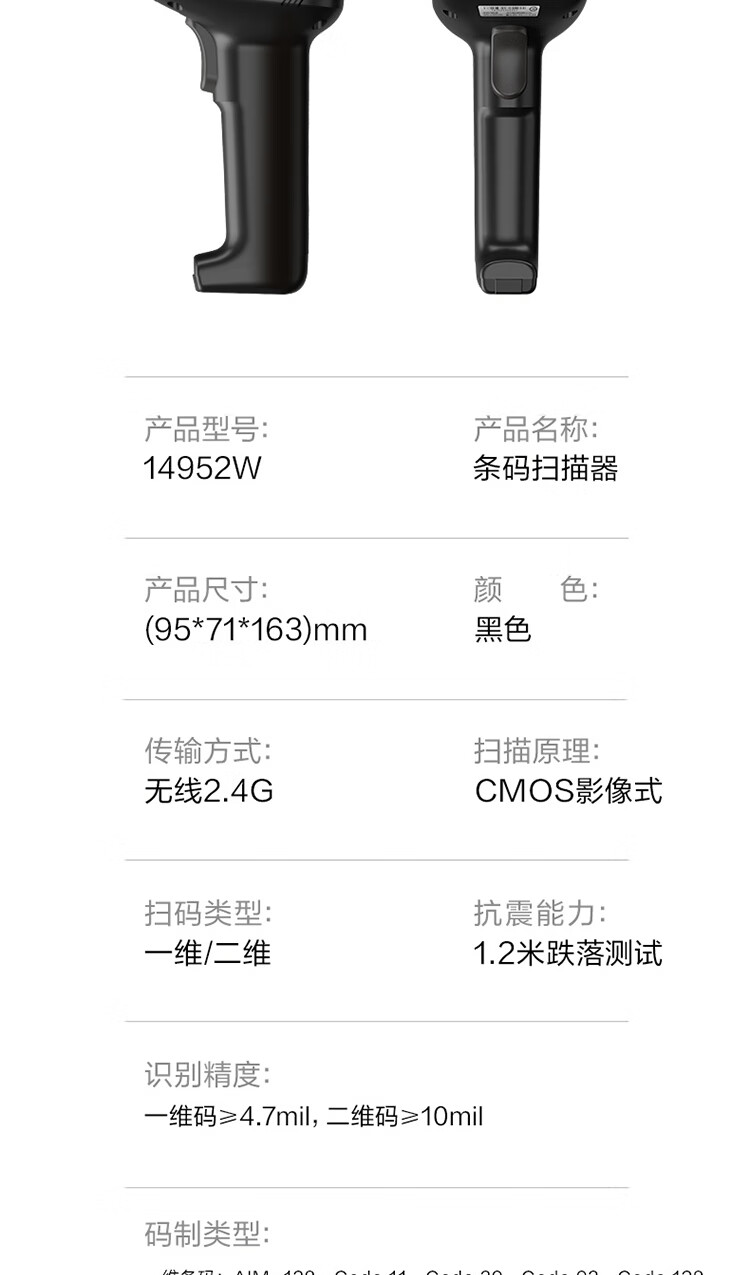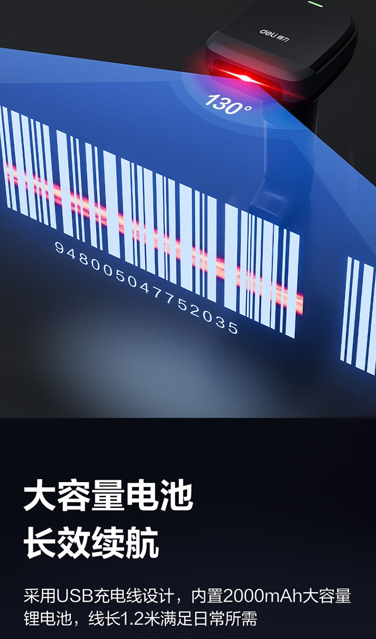 得力/deli 14952W 条码扫描器 条码扫描器二维码收银医保支付 快递物流查询备件仓