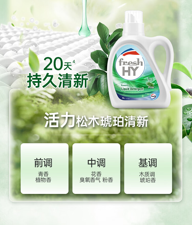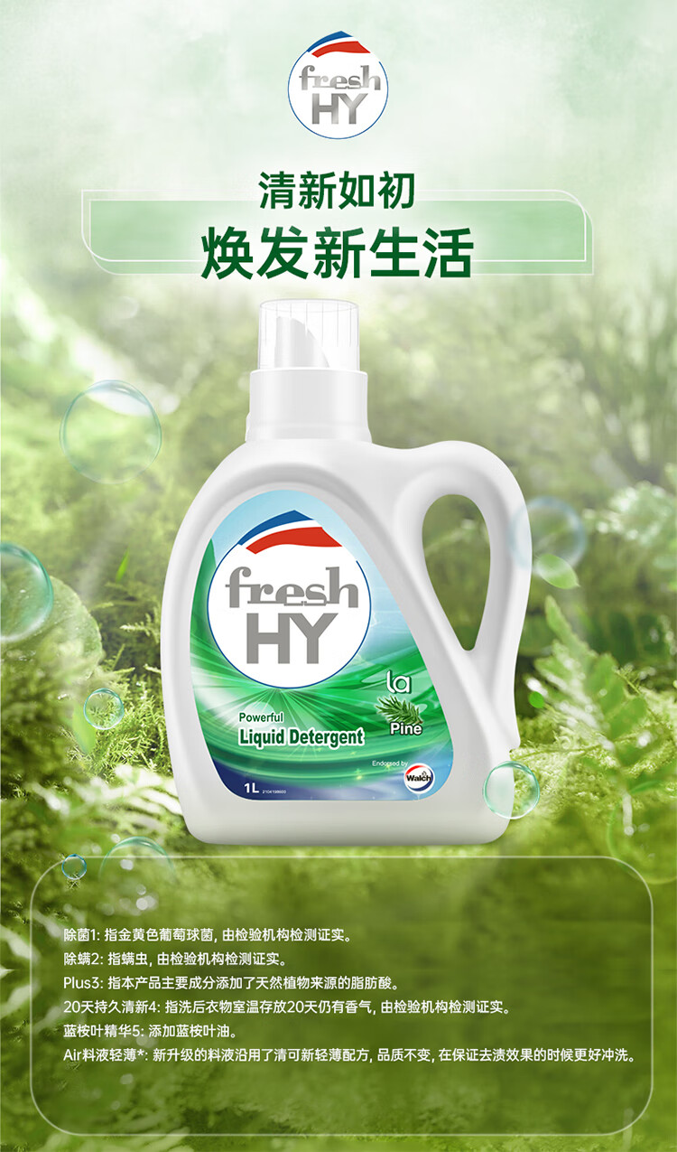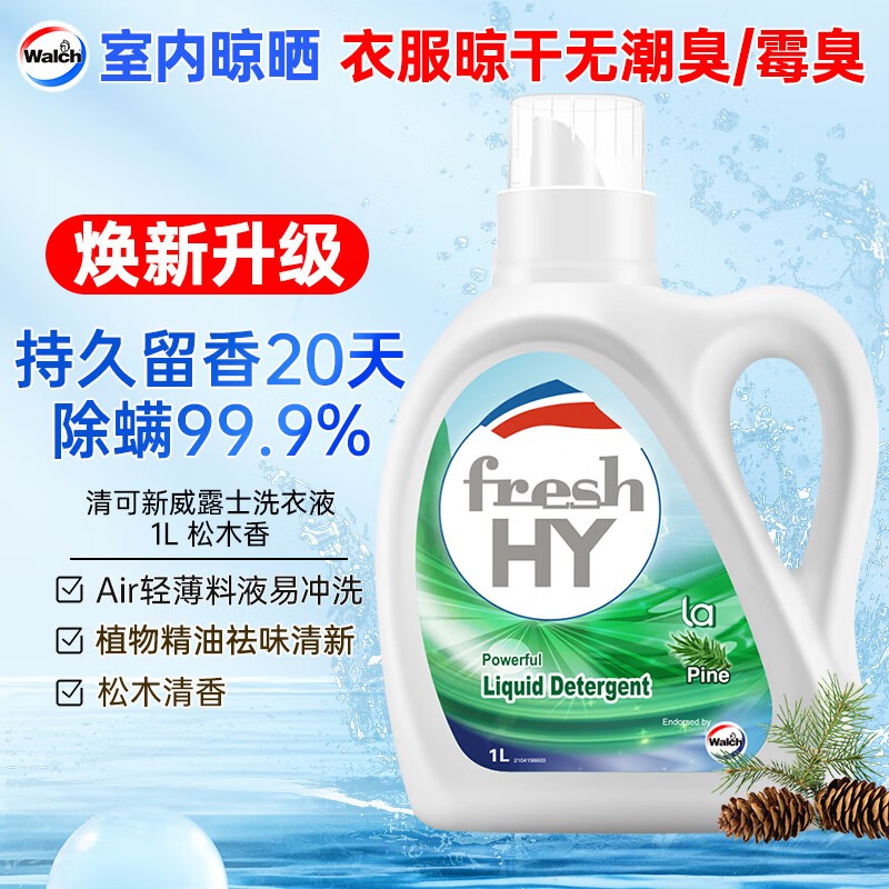 威露士/Walch 1L 洗衣液/洗衣粉 清可新洗衣液松木香1L/瓶 除菌除螨除霉快洗去污渍 持久留香