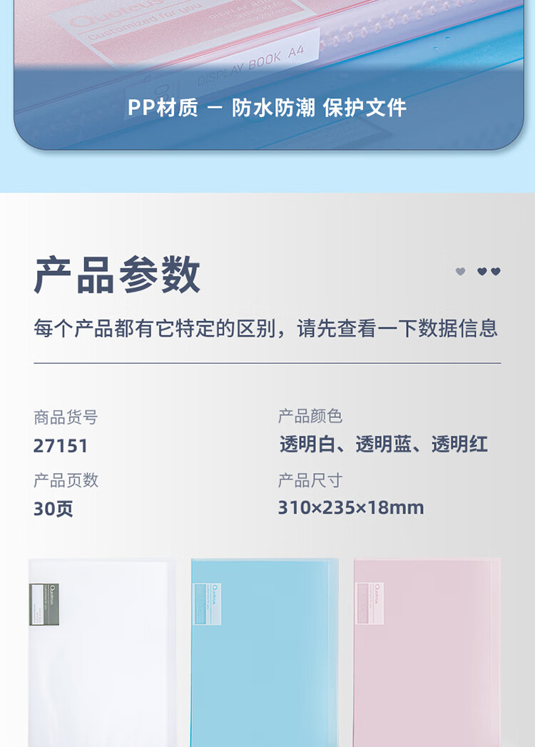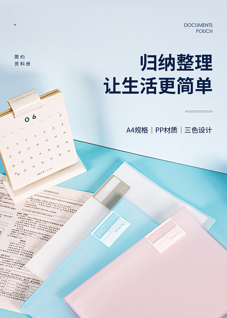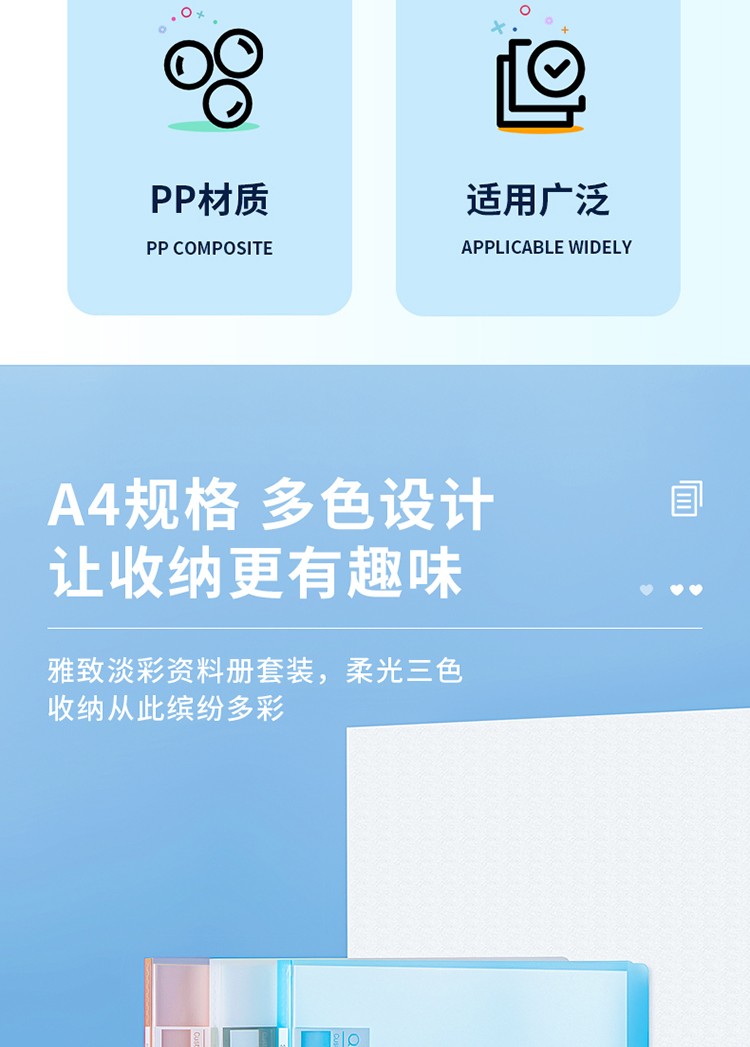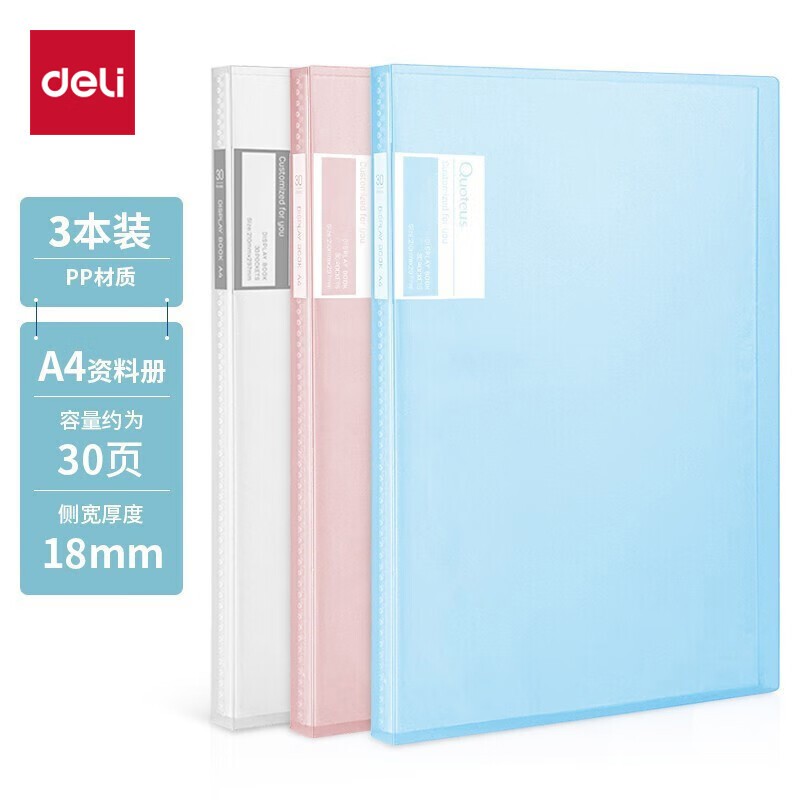 得力/deli 27151 文件夹 A4/30页淡彩资料册3只混色装