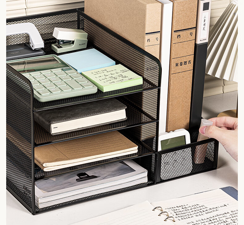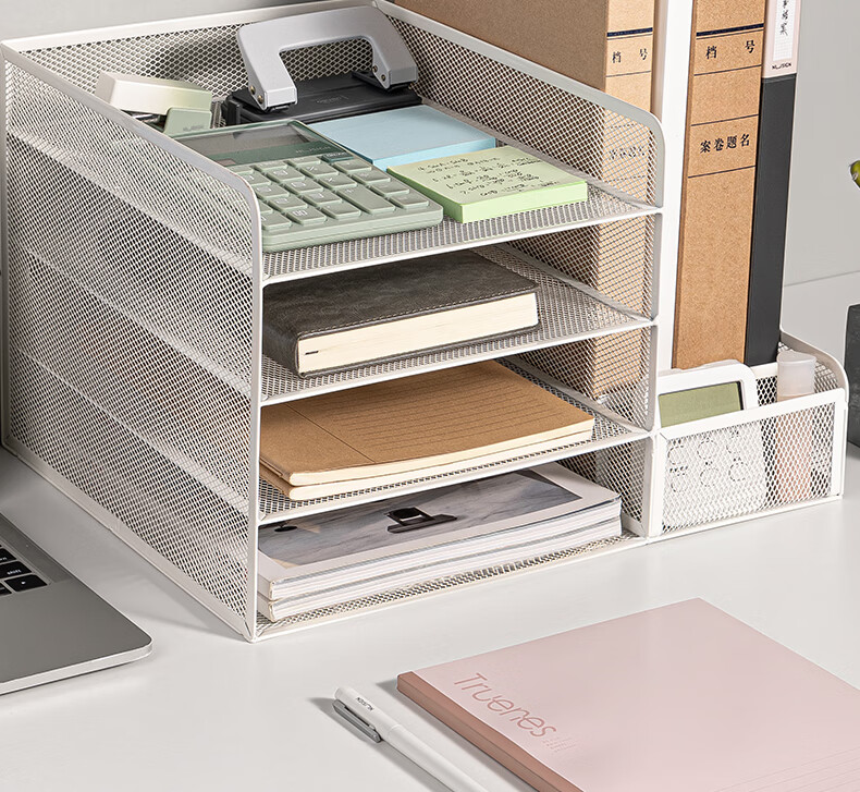 得力/deli PB122 文件筐 多功能4层金属组合式文件框 白色