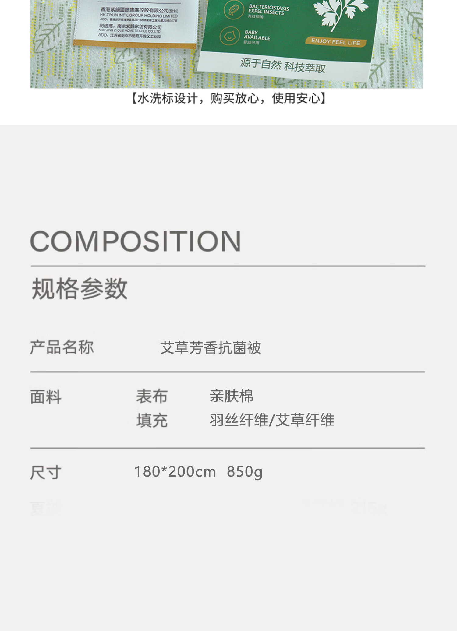 紫韵 ZY-BM1686 被子/被单 艾草芳香抗菌被
