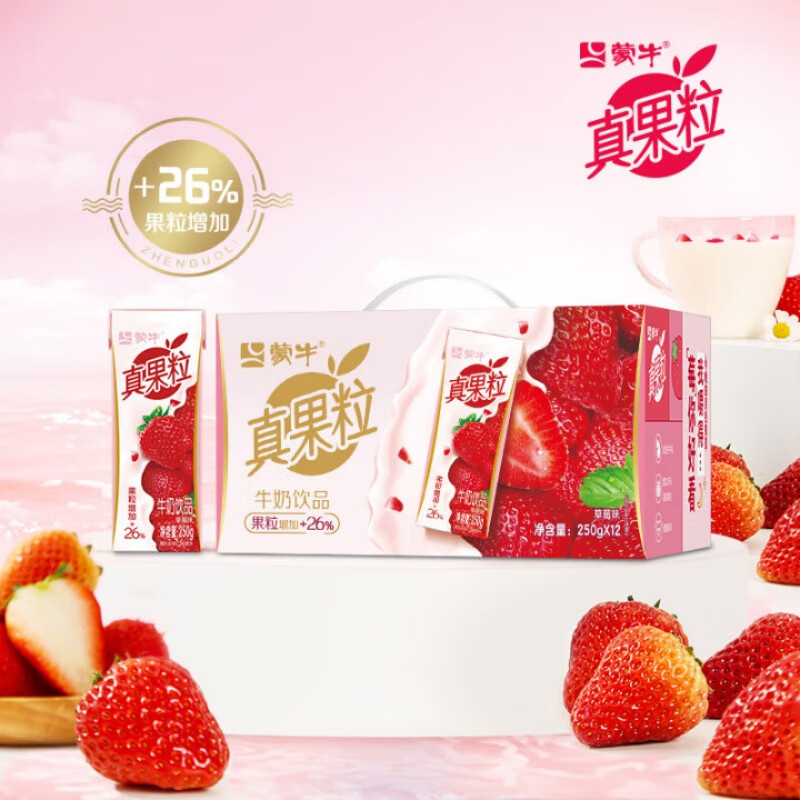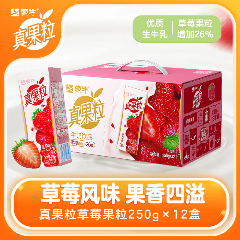 蒙牛/MENGNIU 250ml*12牛奶 蒙牛康美苗条装真果粒草莓250ml/盒*12