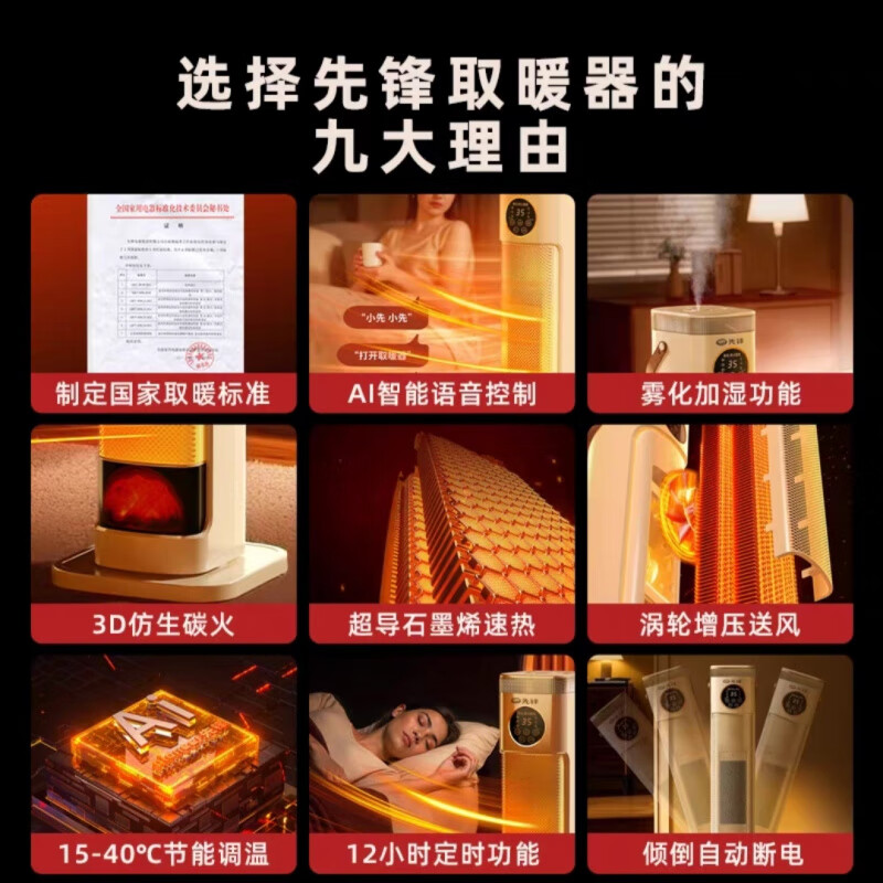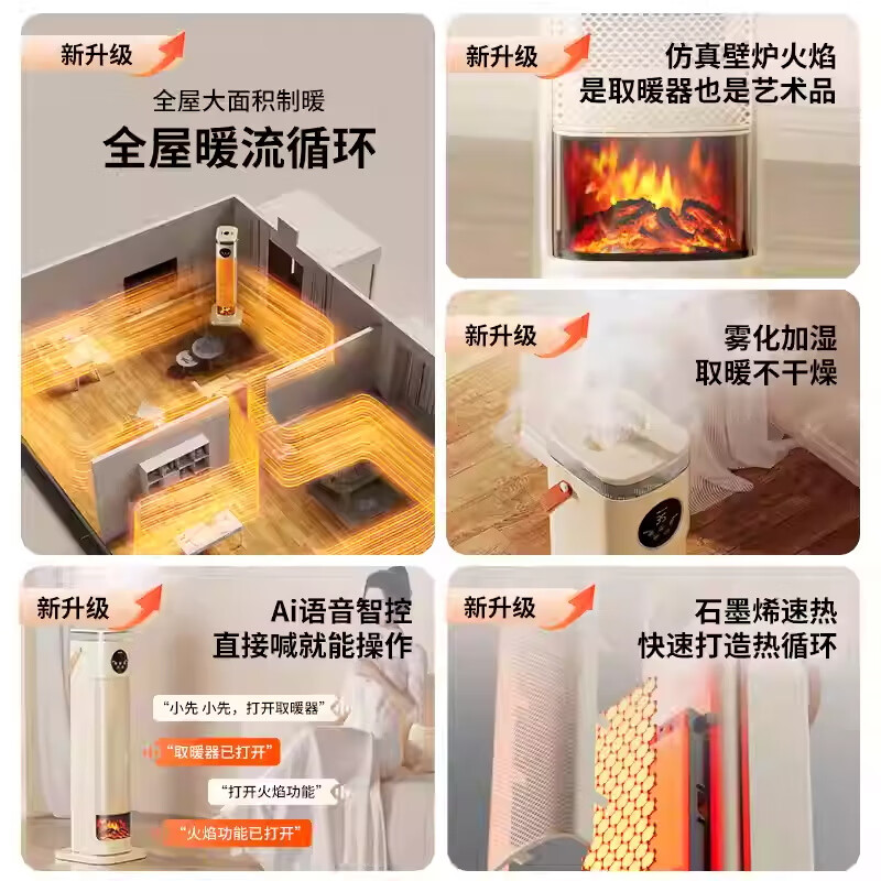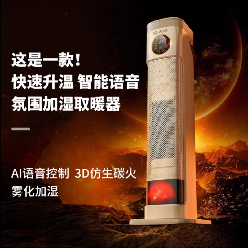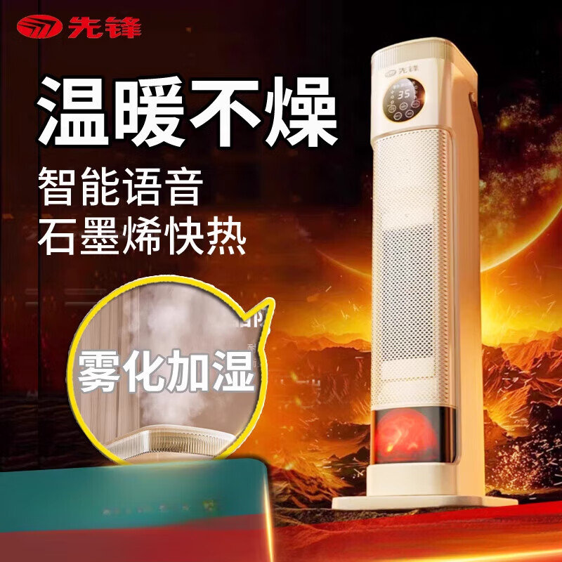 先锋 HNS2401L取暖器 语音速热塔式加湿暖风机家用取暖器电暖气塔立式小型烤火炉 焰火石墨烯快热语音款 白色