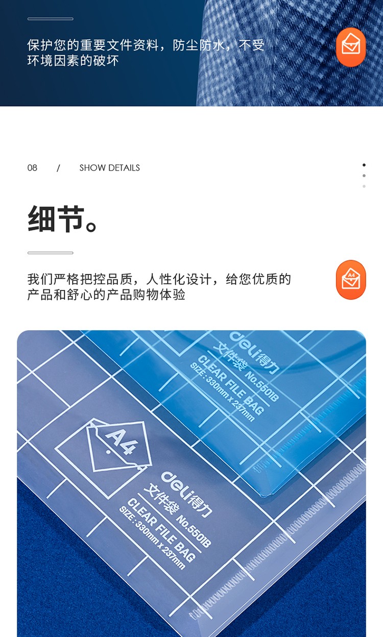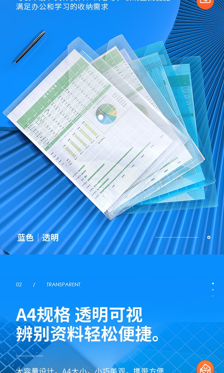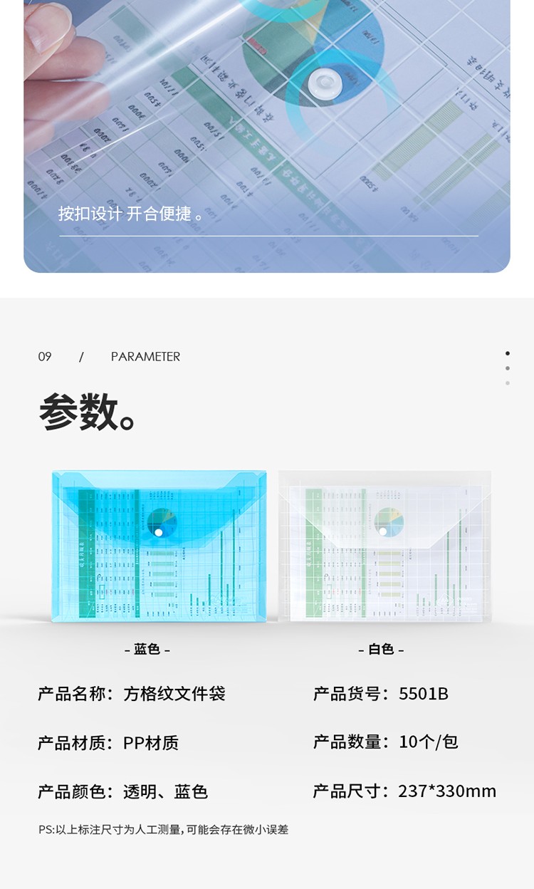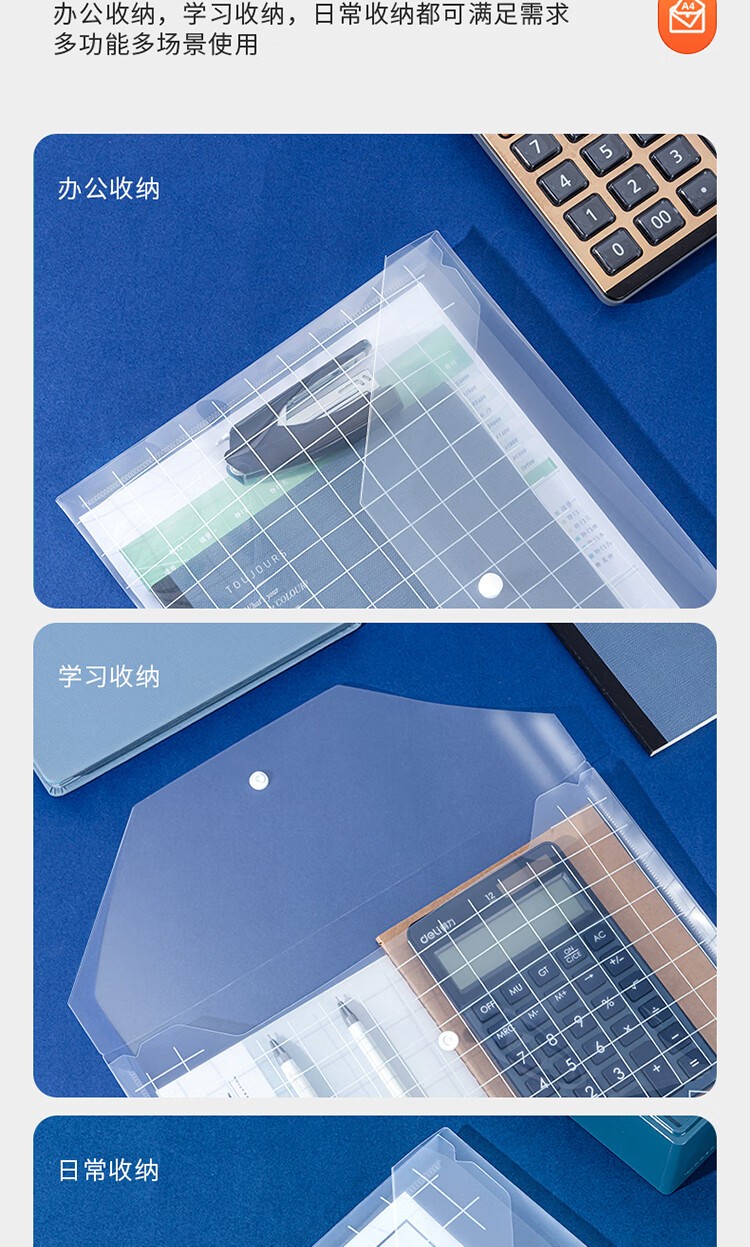 得力/deli 5501B 文件袋 10只A4加厚透明文件袋 按扣资料袋