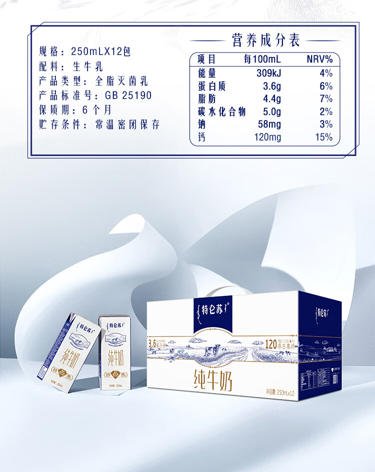 蒙牛/MENGNIU 250ml*12牛奶 特仑苏纯牛奶