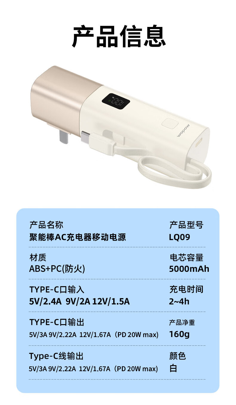 沃品/WOPOW LQ09 手机充电器 聚能棒AC充电器移动电源 LQ09