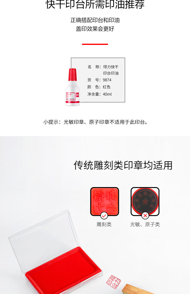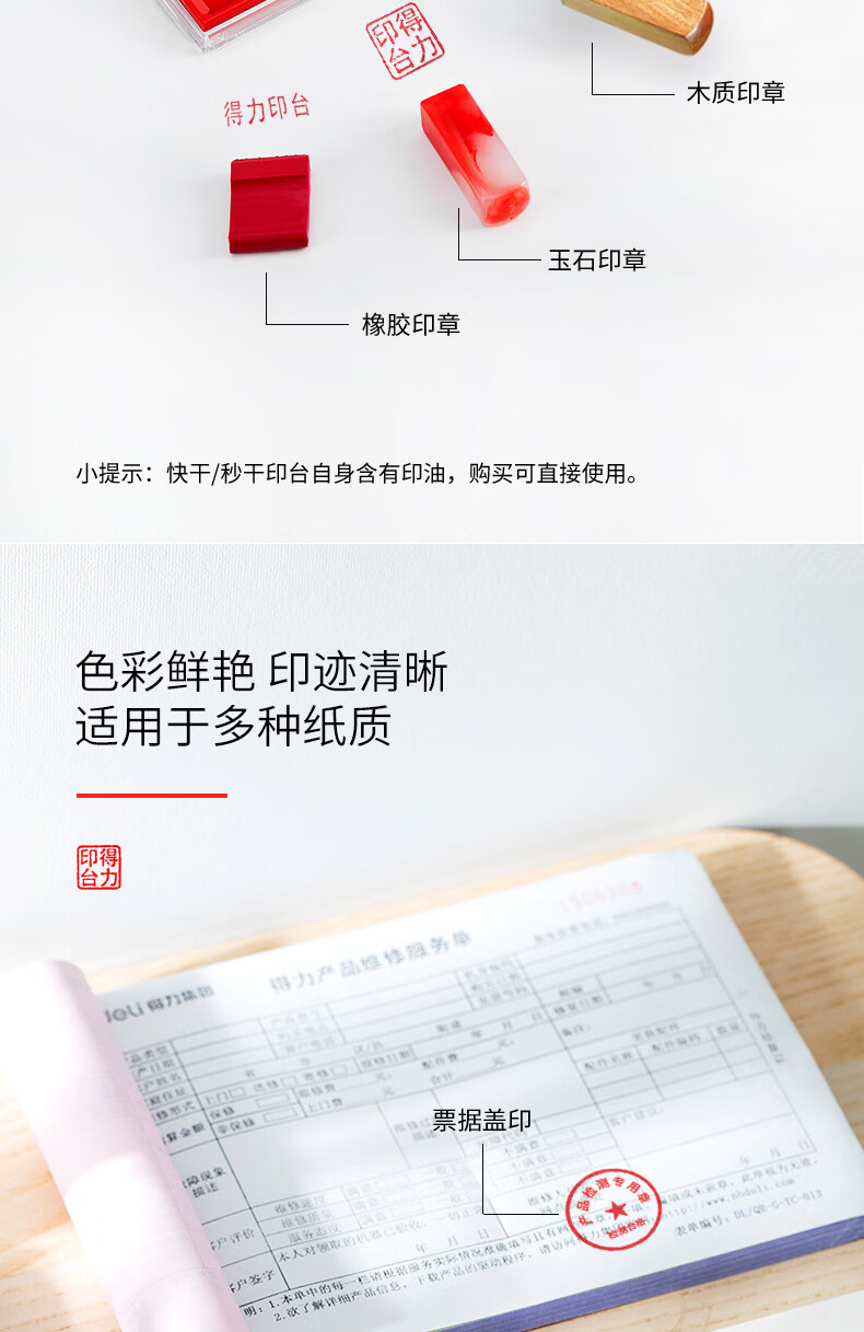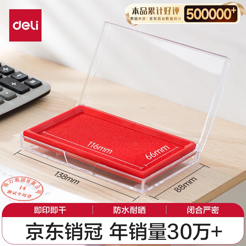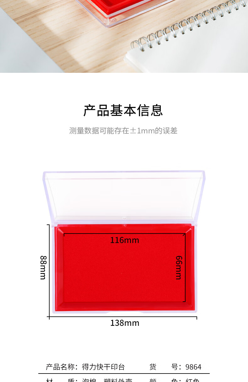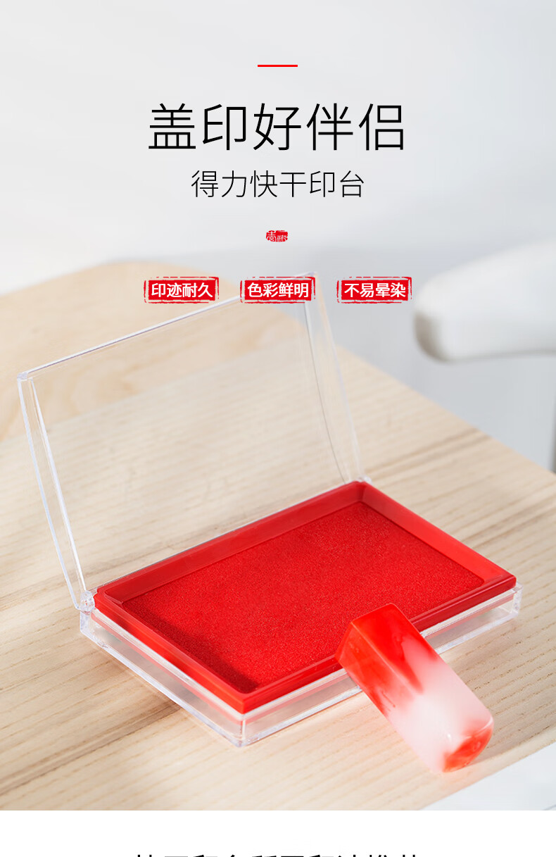 得力/deli 9864 印台/印泥/印油 内盘面116*66mm透明外壳方形快干印台印泥 办公用品 红色