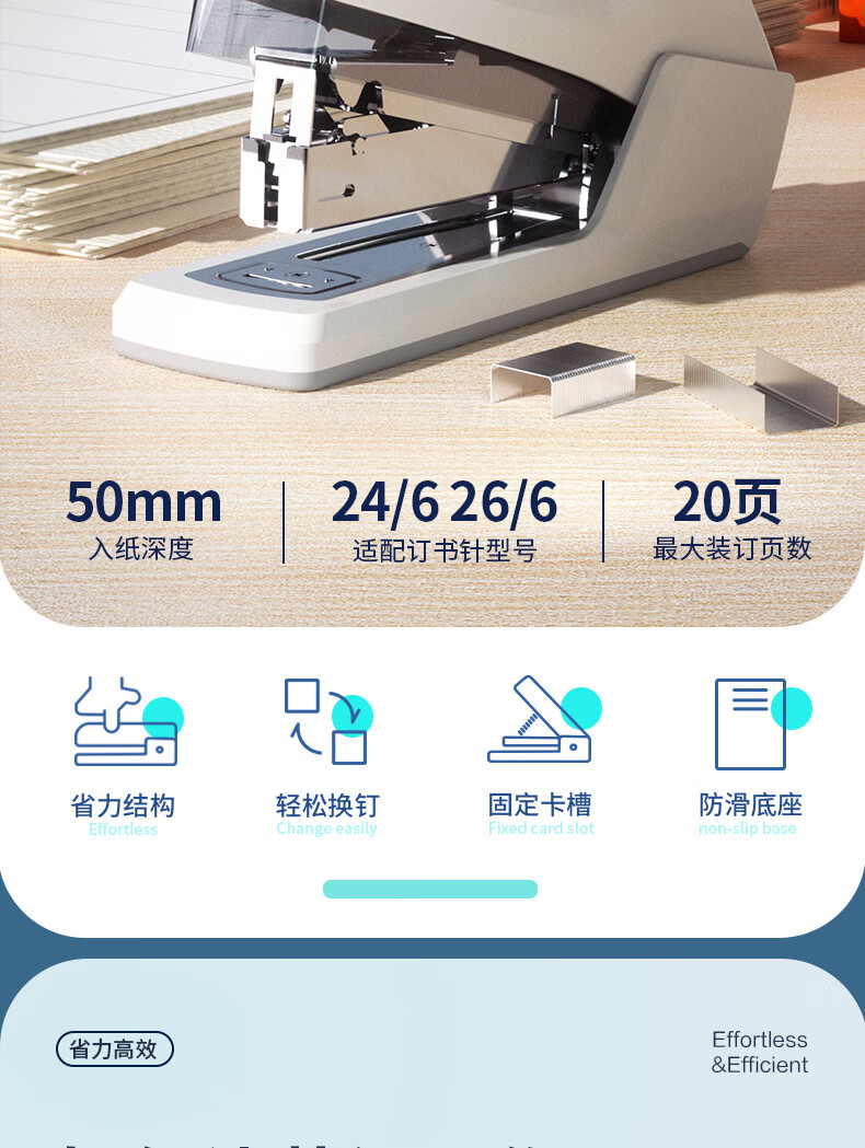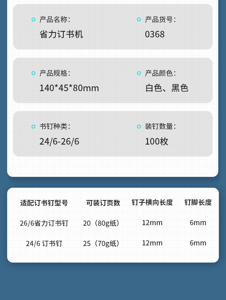 得力/deli 0368 装订及打孔类 适配24/6(12#)及26/6订书钉 办公用品 白色