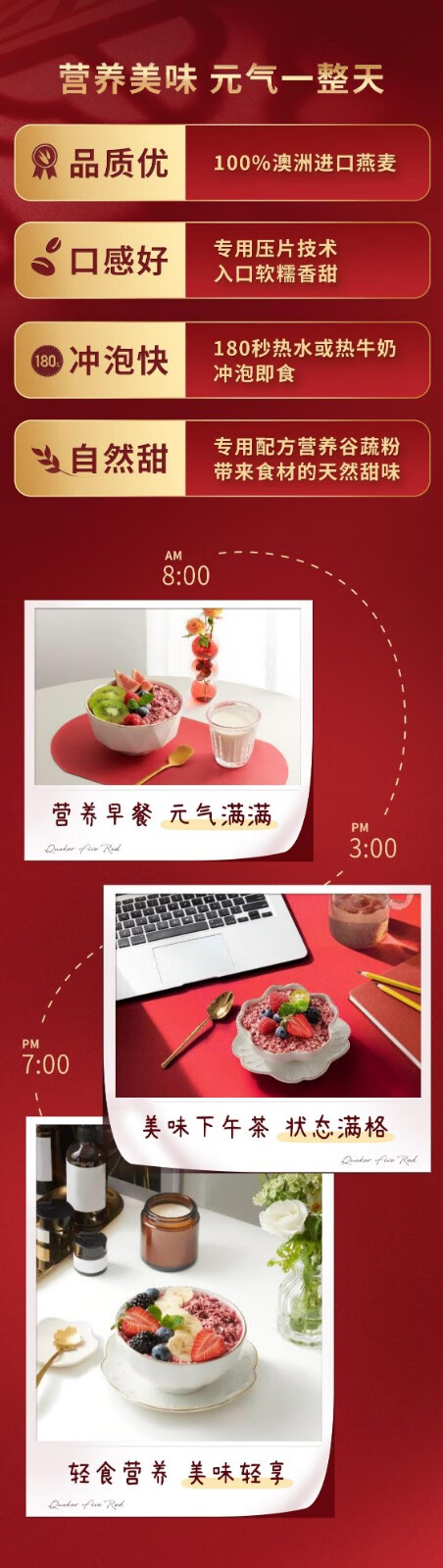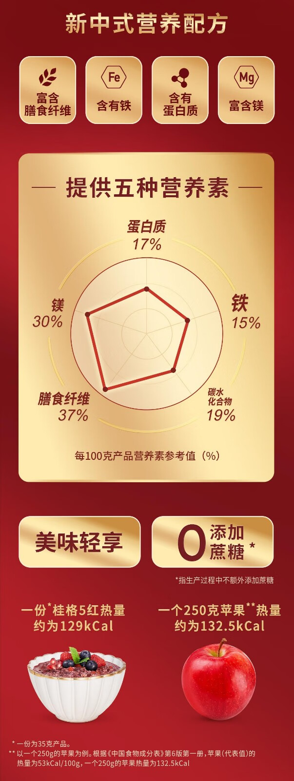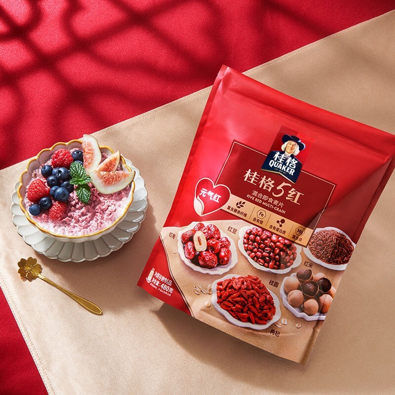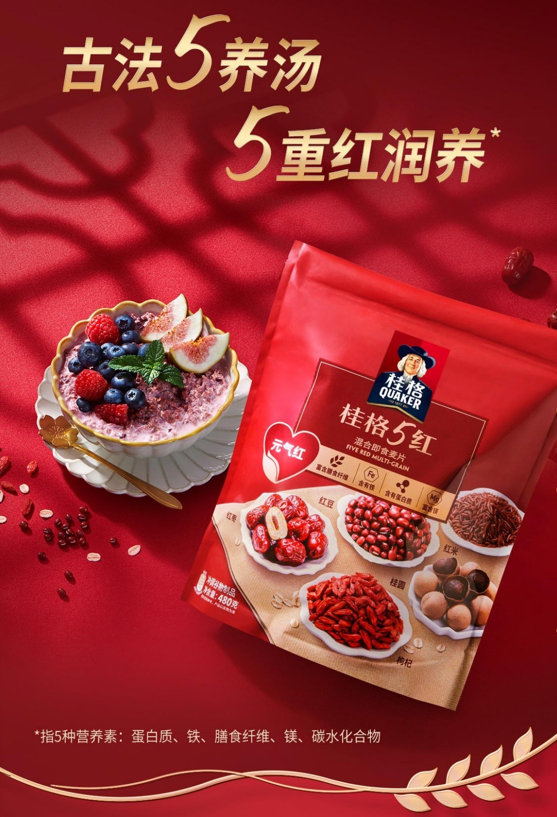 桂格/QUAKER 480 纯燕麦片 桂格5红燕麦片480克混合冲饮五红即食红豆红米早餐代餐 5红混合麦片480g*2