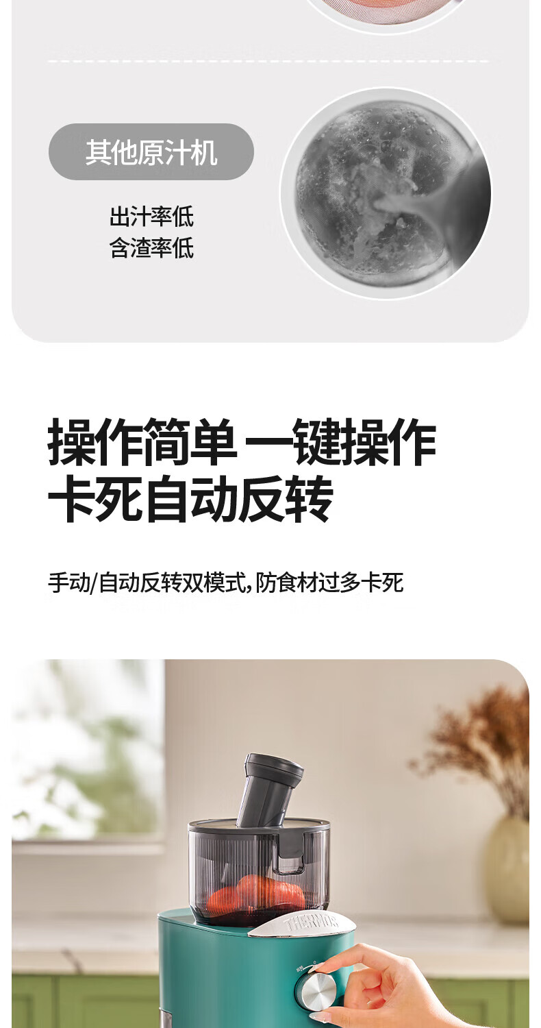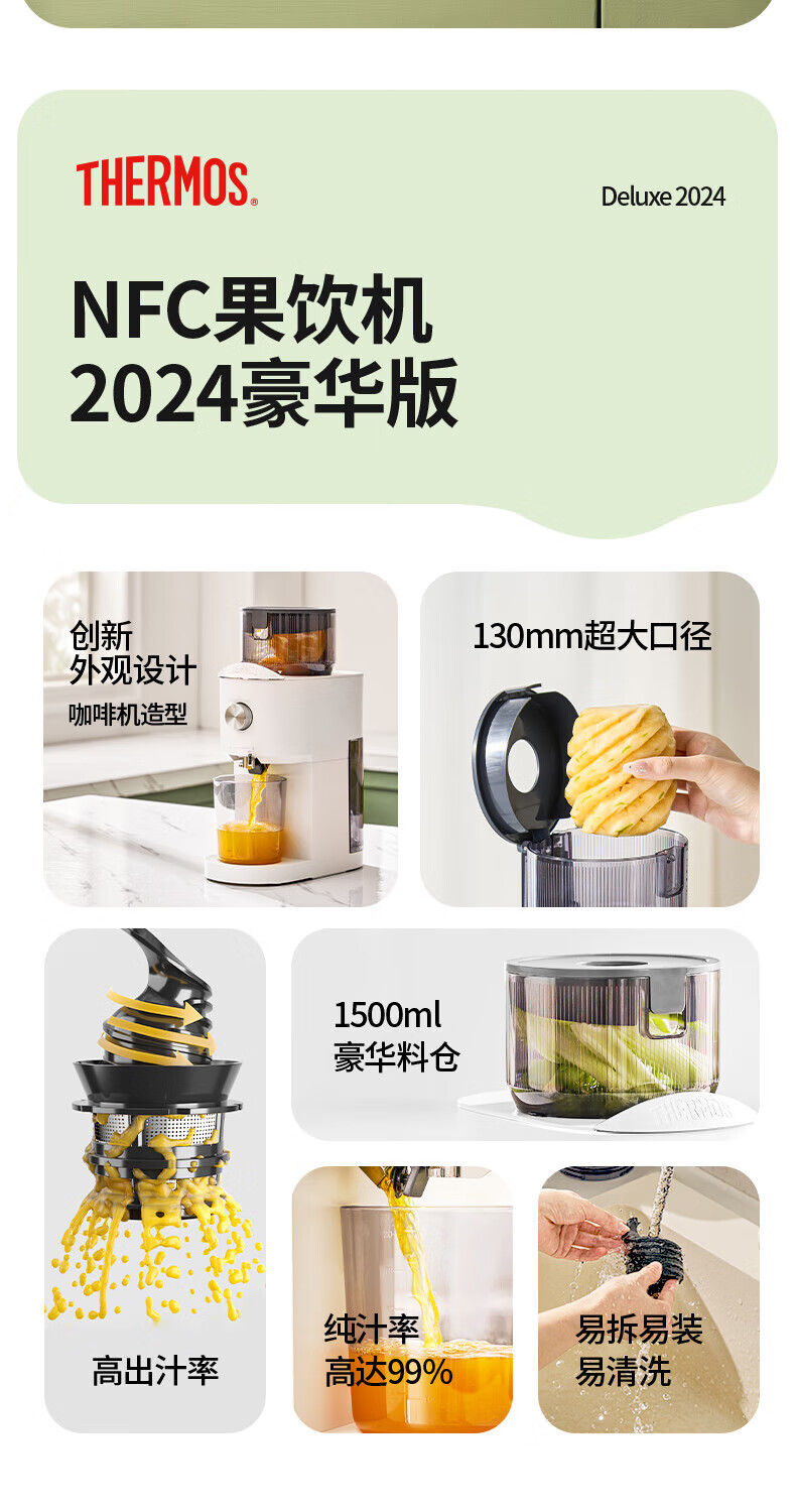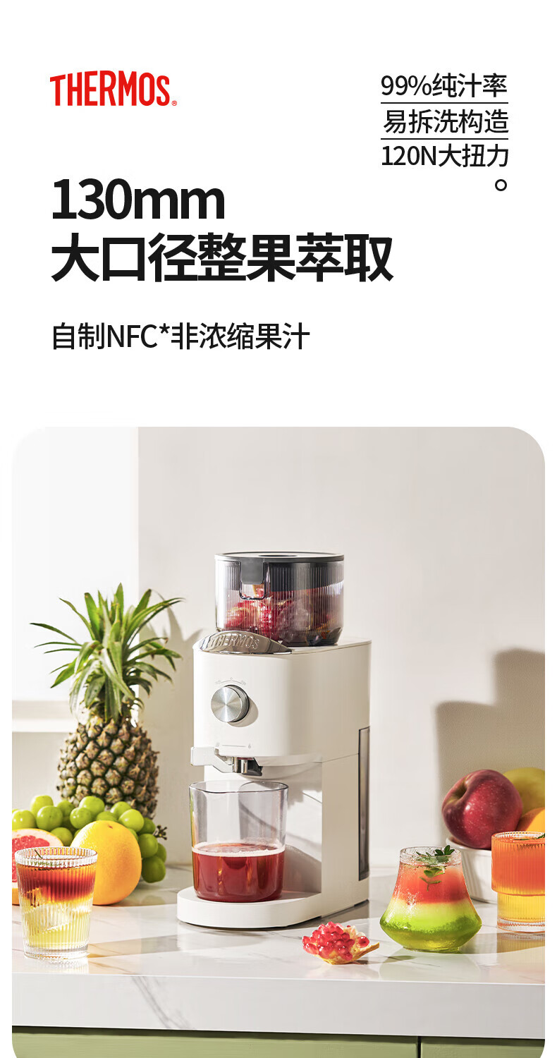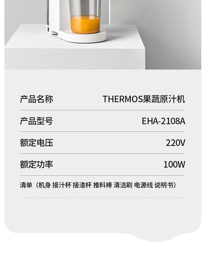 膳魔师/THERMOS EHA-2108A原汁机 全自动多功能水果蔬菜石榴大容量大口径压榨打汁杯 灰色