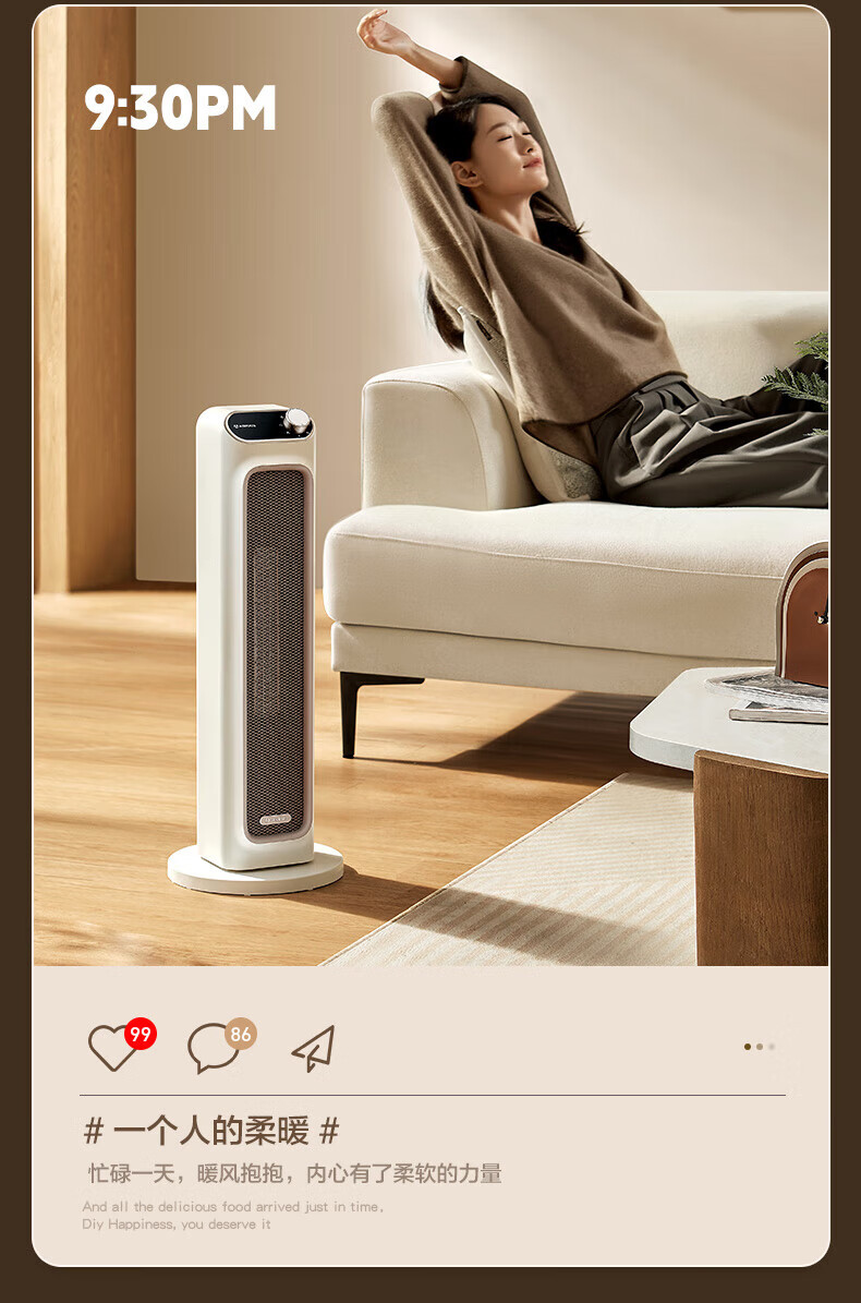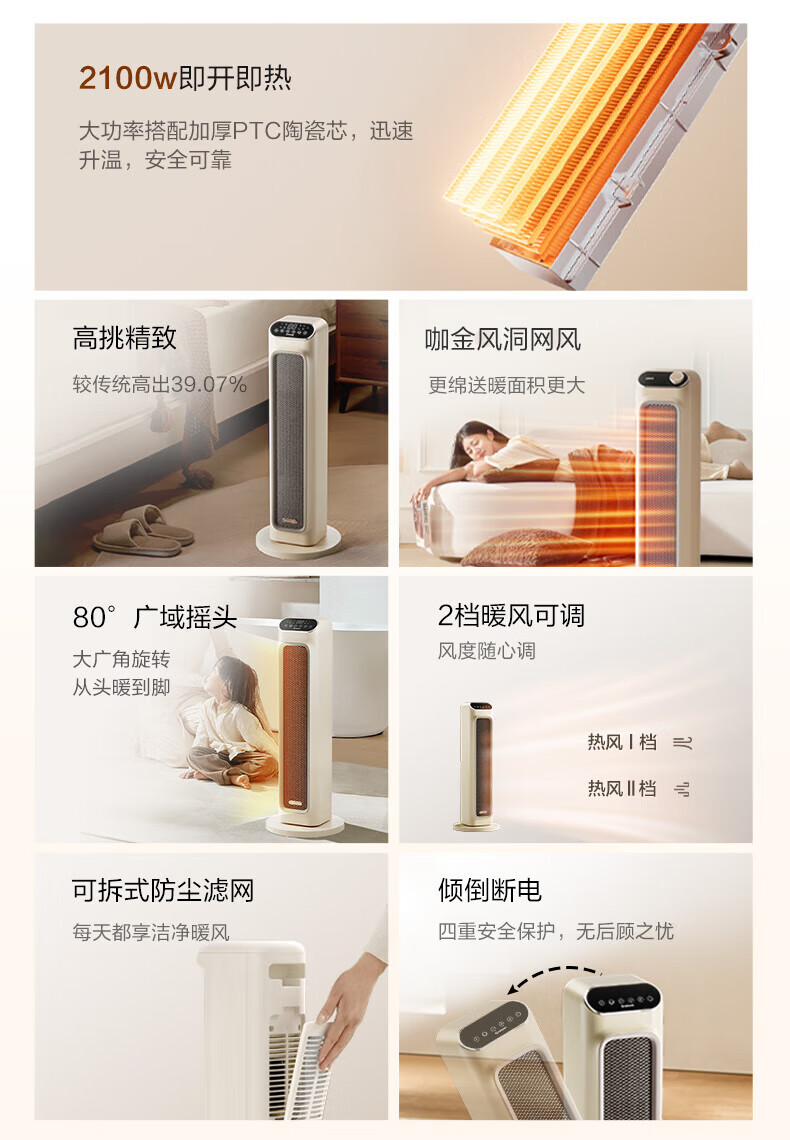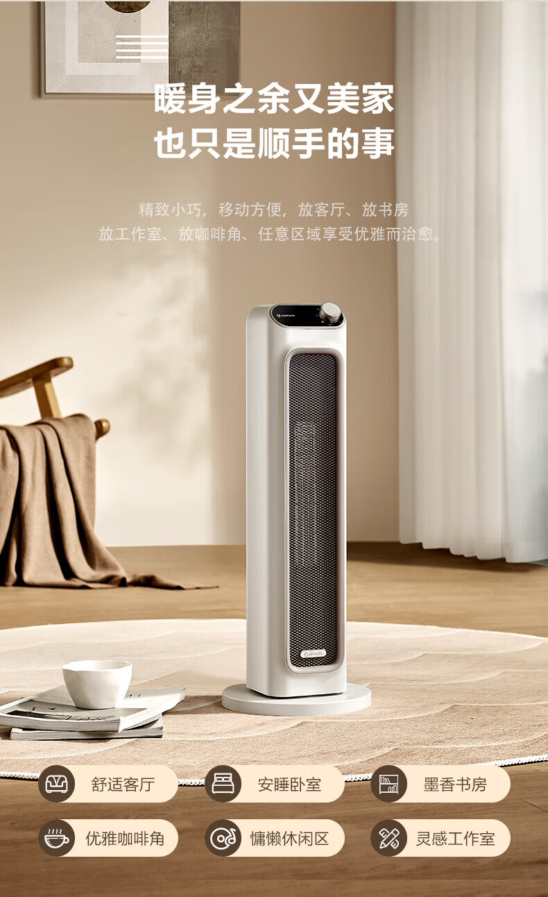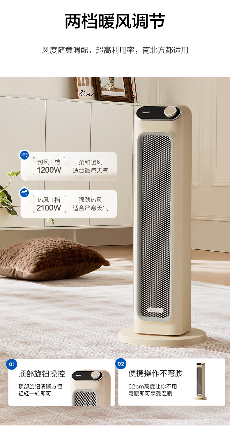 艾美特/Airmate HP21-K26取暖器 家用立式暖风机 奶咖系列-80°广域摇头