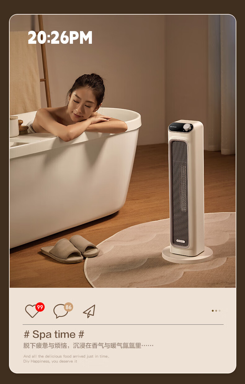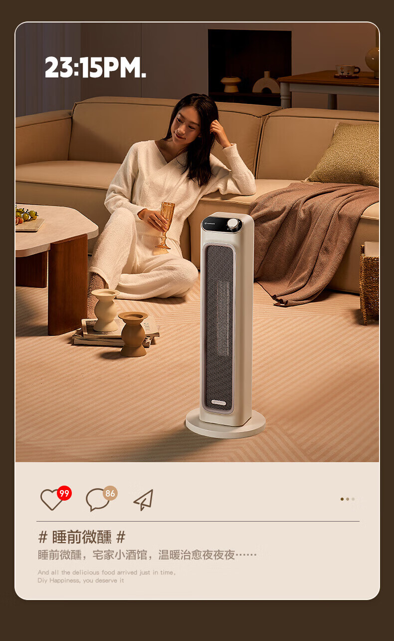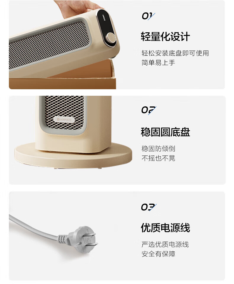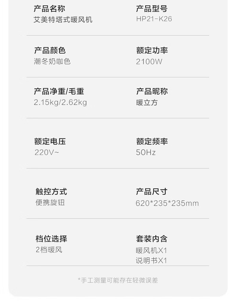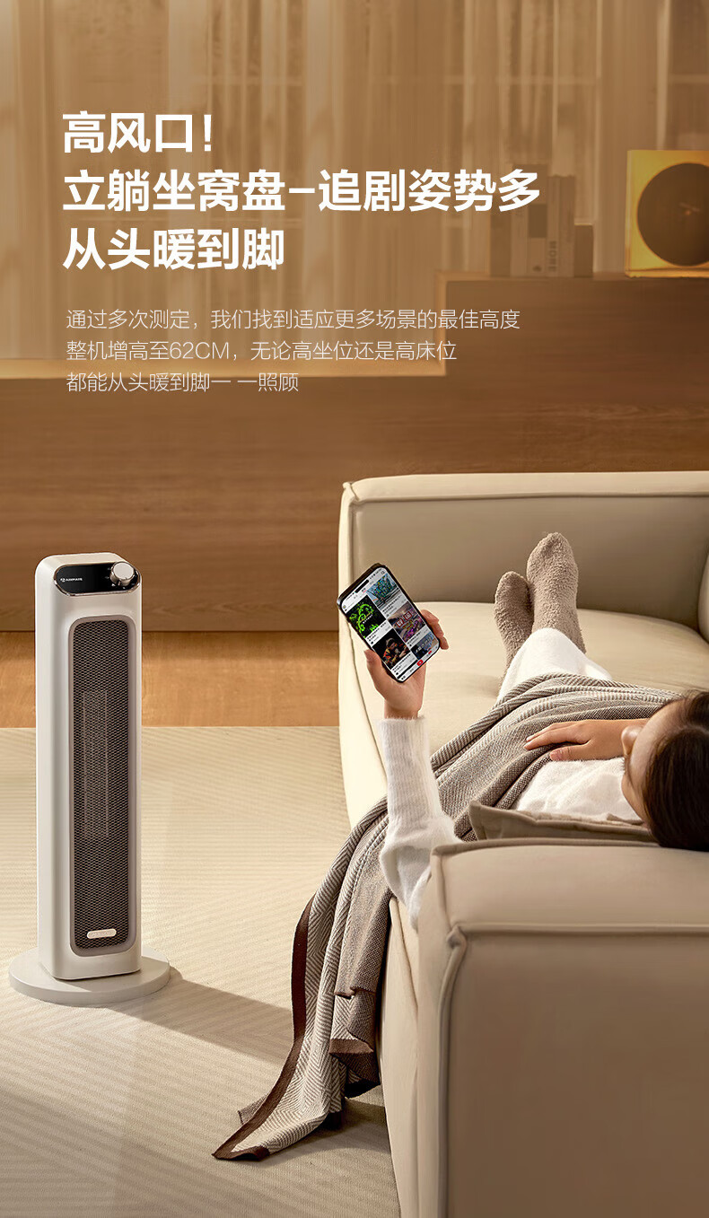 艾美特/Airmate HP21-K26取暖器 家用立式暖风机 奶咖系列-80°广域摇头