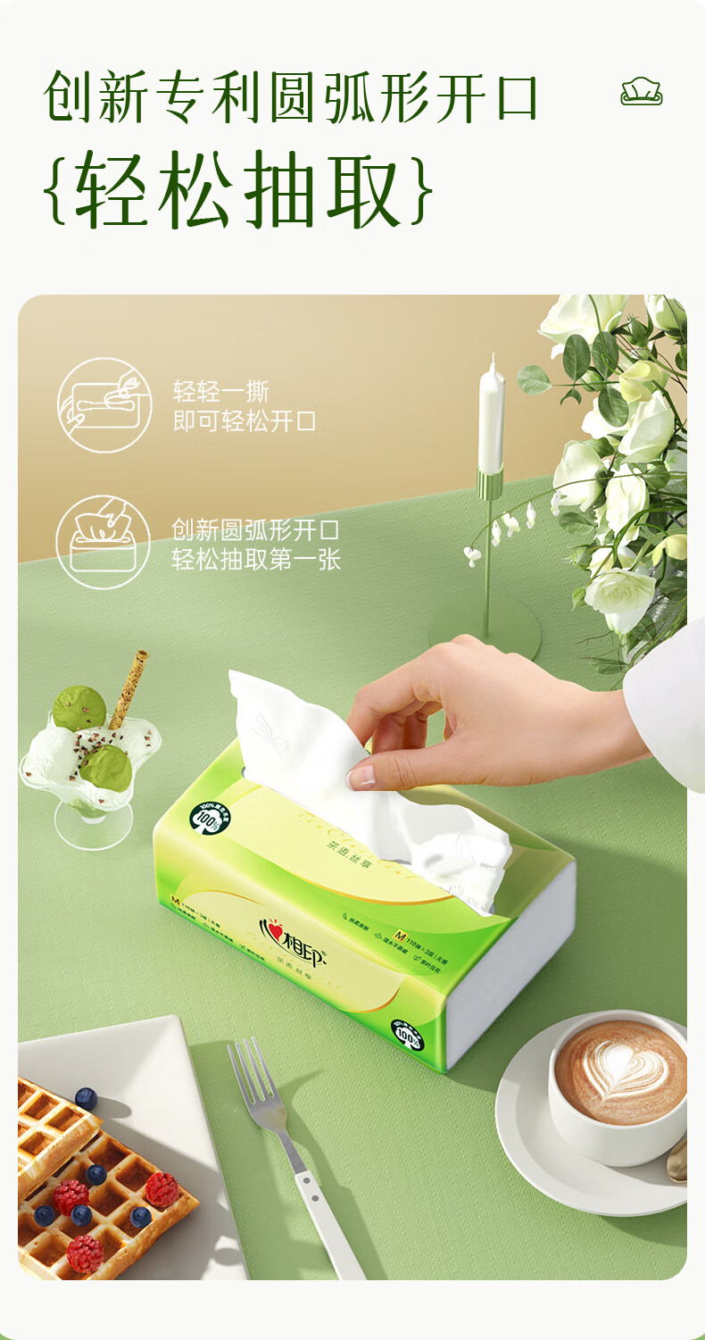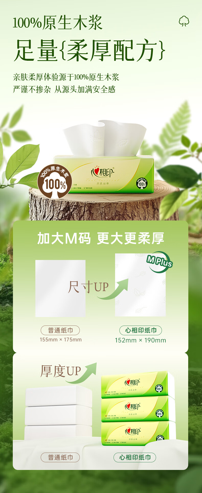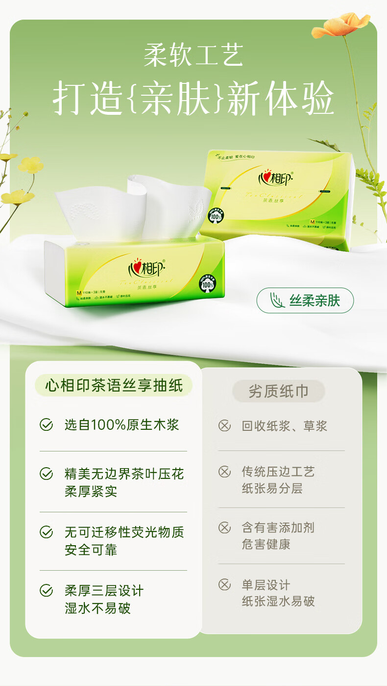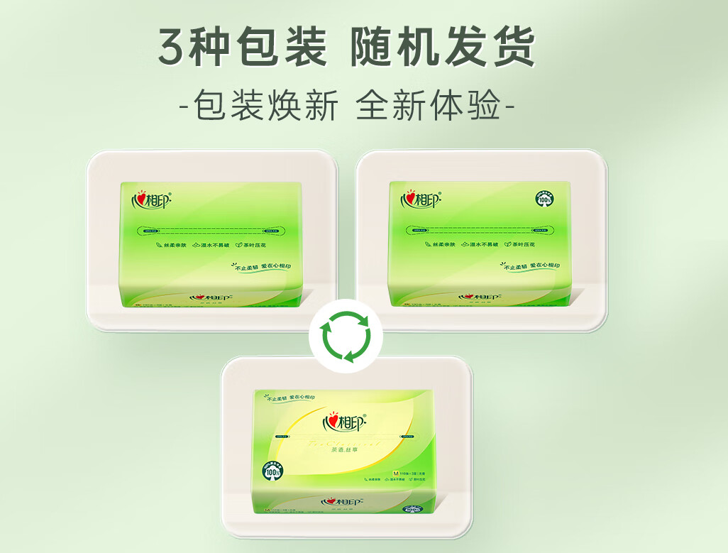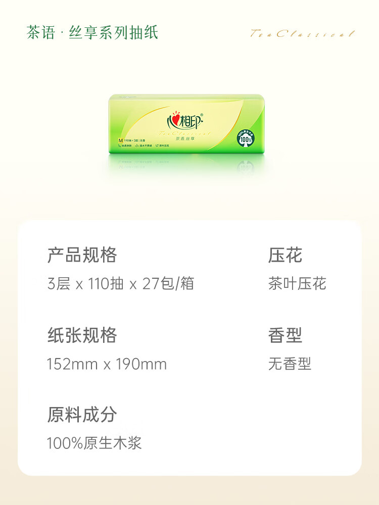 心相印/MindActUponMind DT32110 软包抽取式面纸 心相印茶语丝享系列27包110抽三层塑料纸面巾(M码)