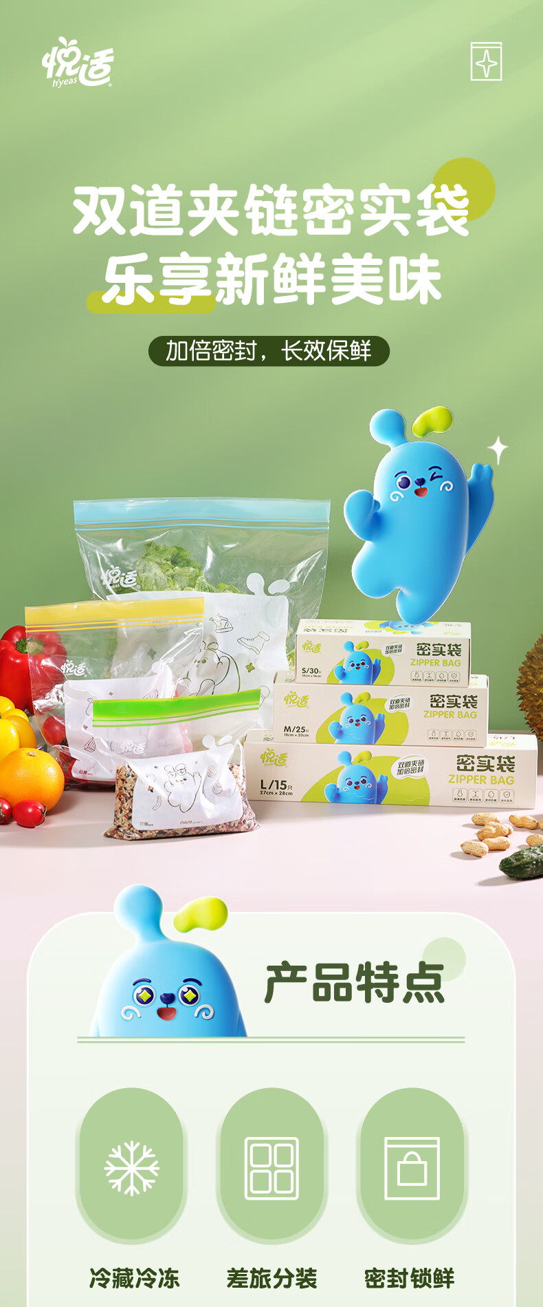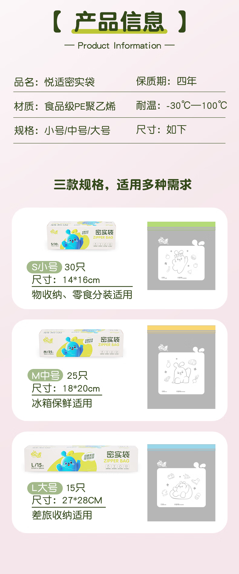悦适/h\'yeas ZE6261 塑料制品 悦适三合一组合装密实袋(90只装)