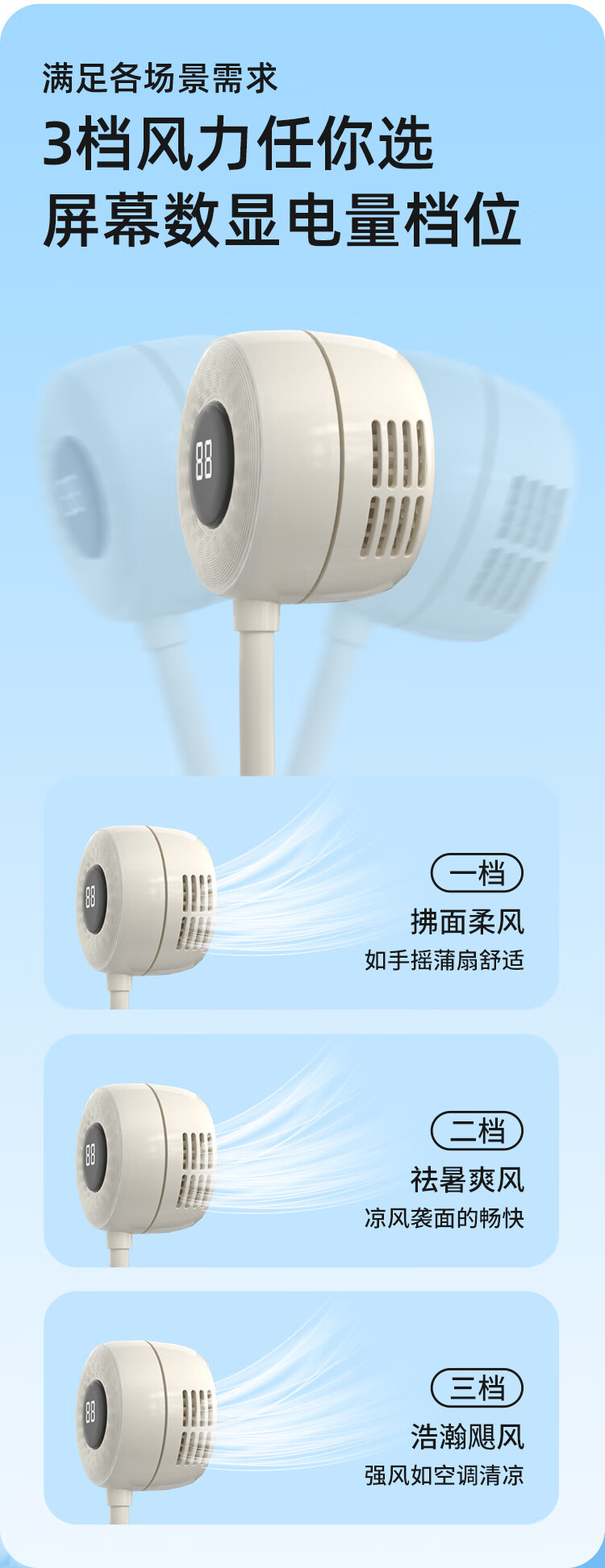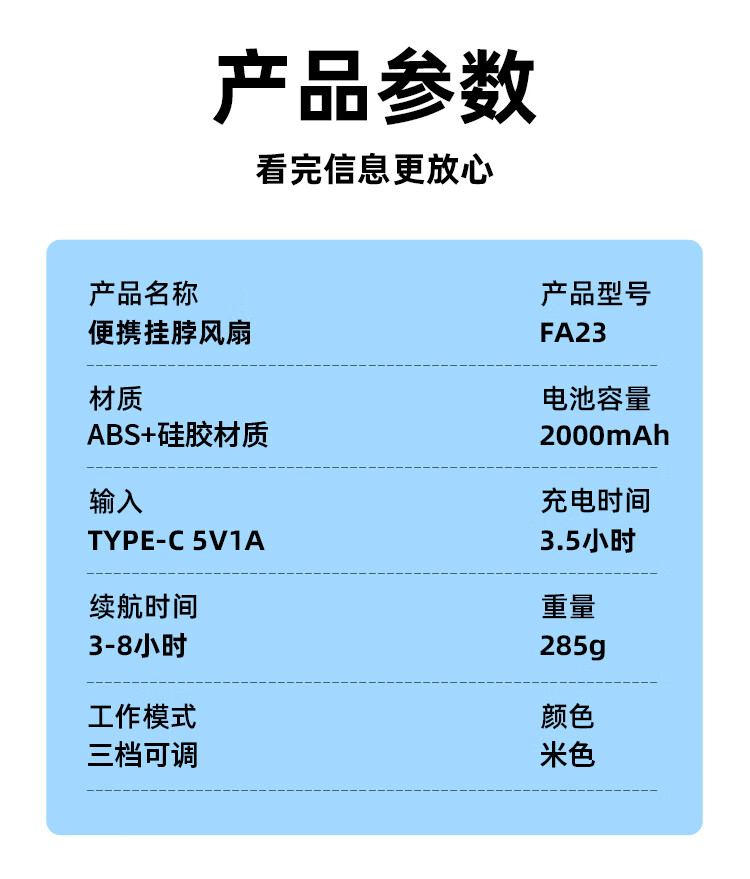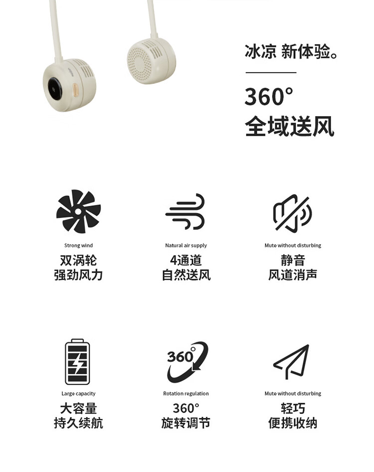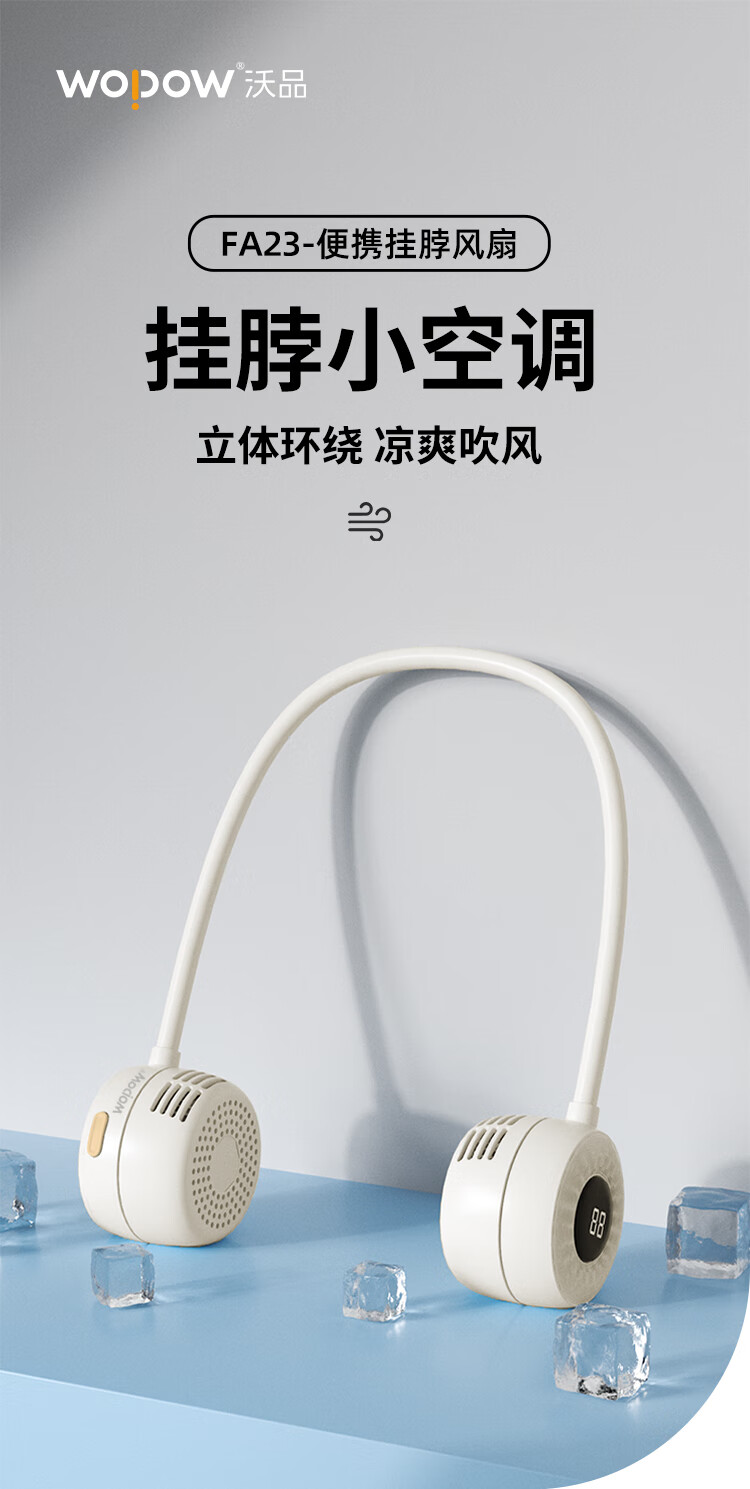 沃品/WOPOW FA23 风扇 户外运动颈挂式USB小电扇夏日懒人必备电风扇制冷