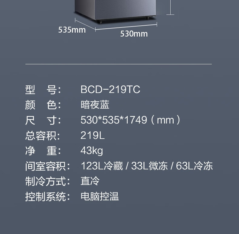 创维/Skyworth BCD-219TC电冰箱 暗夜蓝 直冷三门冰箱 219L