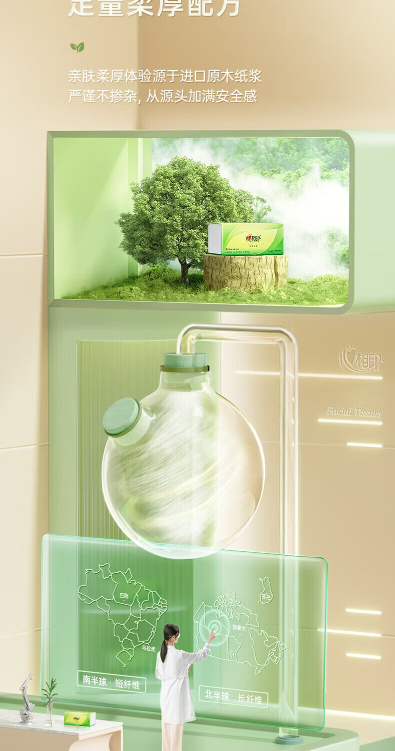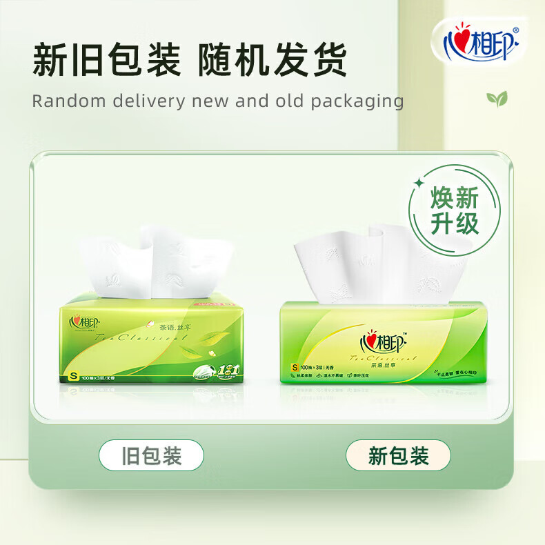 心相印/MindActUponMind DT15100 软包抽取式面纸 心相印茶语丝享100抽*20包三层塑装纸面巾