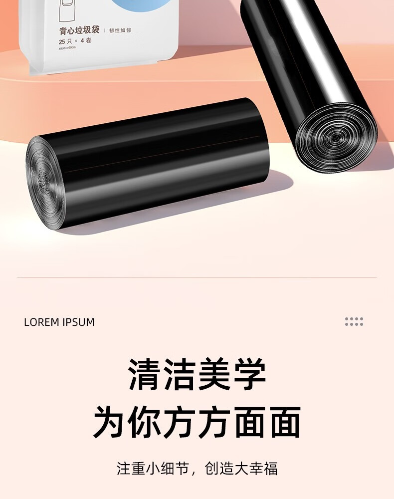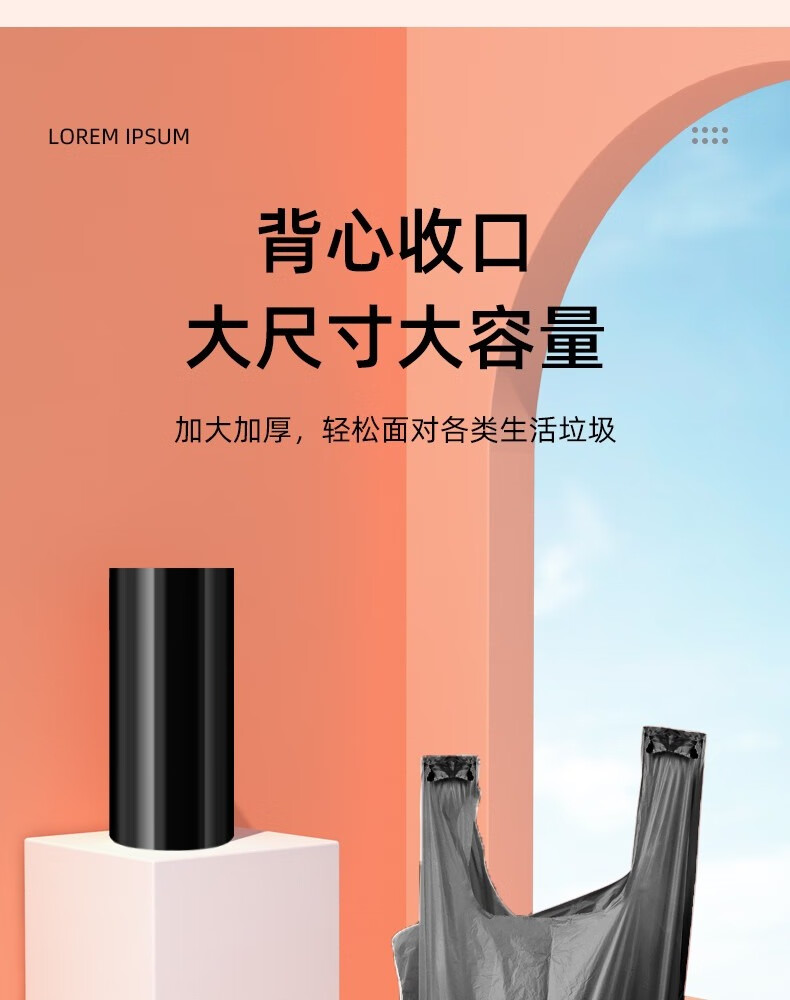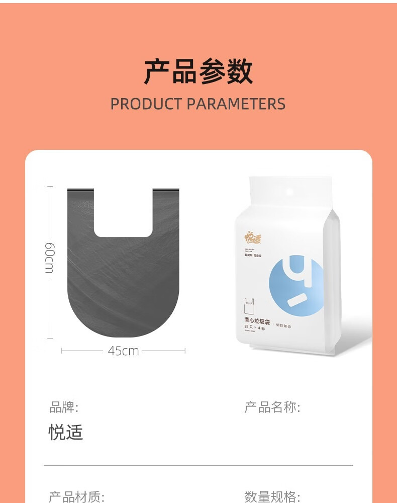 悦适/h\'yeas QZBKB100 塑料制品 悦适背心式清洁袋垃圾袋黑色四卷(45cm*60cm)100只装*2包