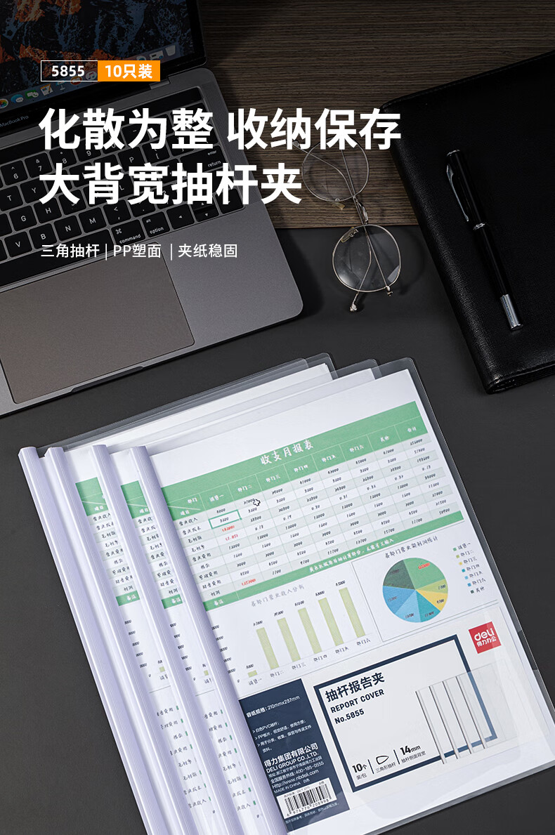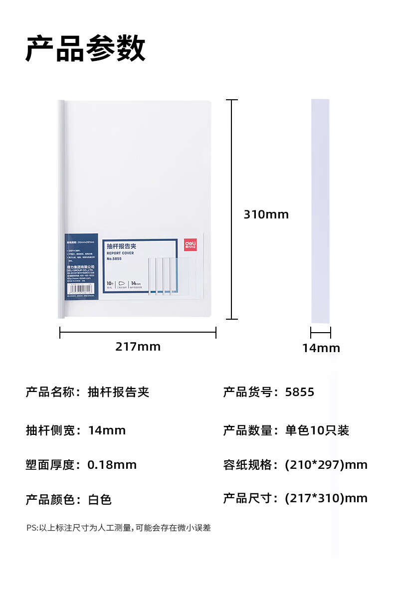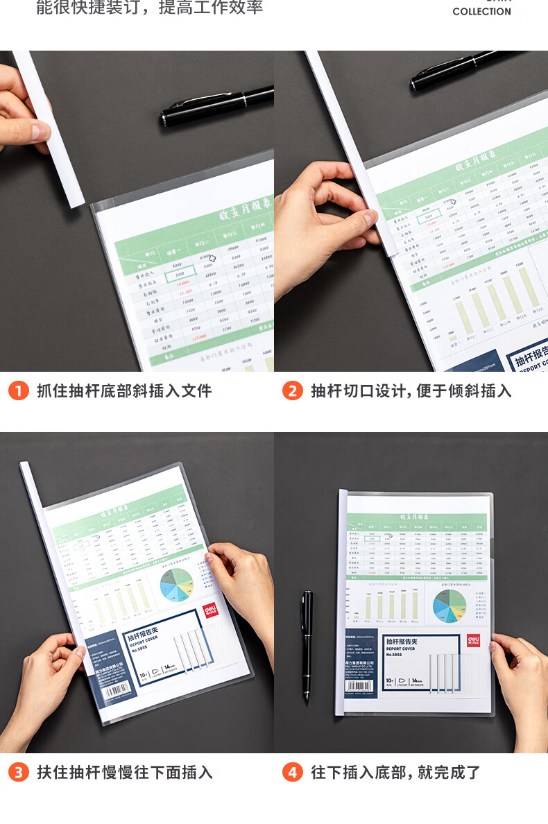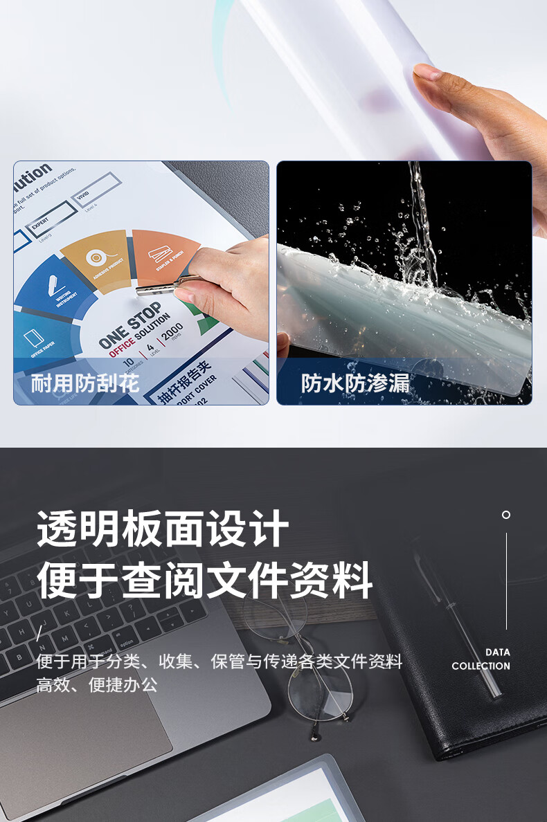 得力/deli 5855 文件夹 0只A4透明抽杆文件夹拉杆夹 资料夹 学生考试简历报告夹商务会议资料报告收纳