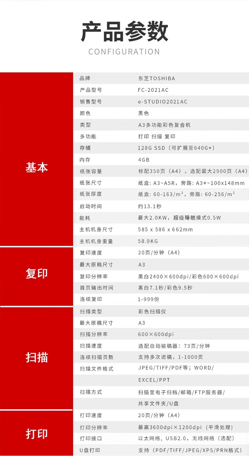 东芝 FC-2021AC A3 彩色打印机 A3入门激光落地网络打印复印扫描一体