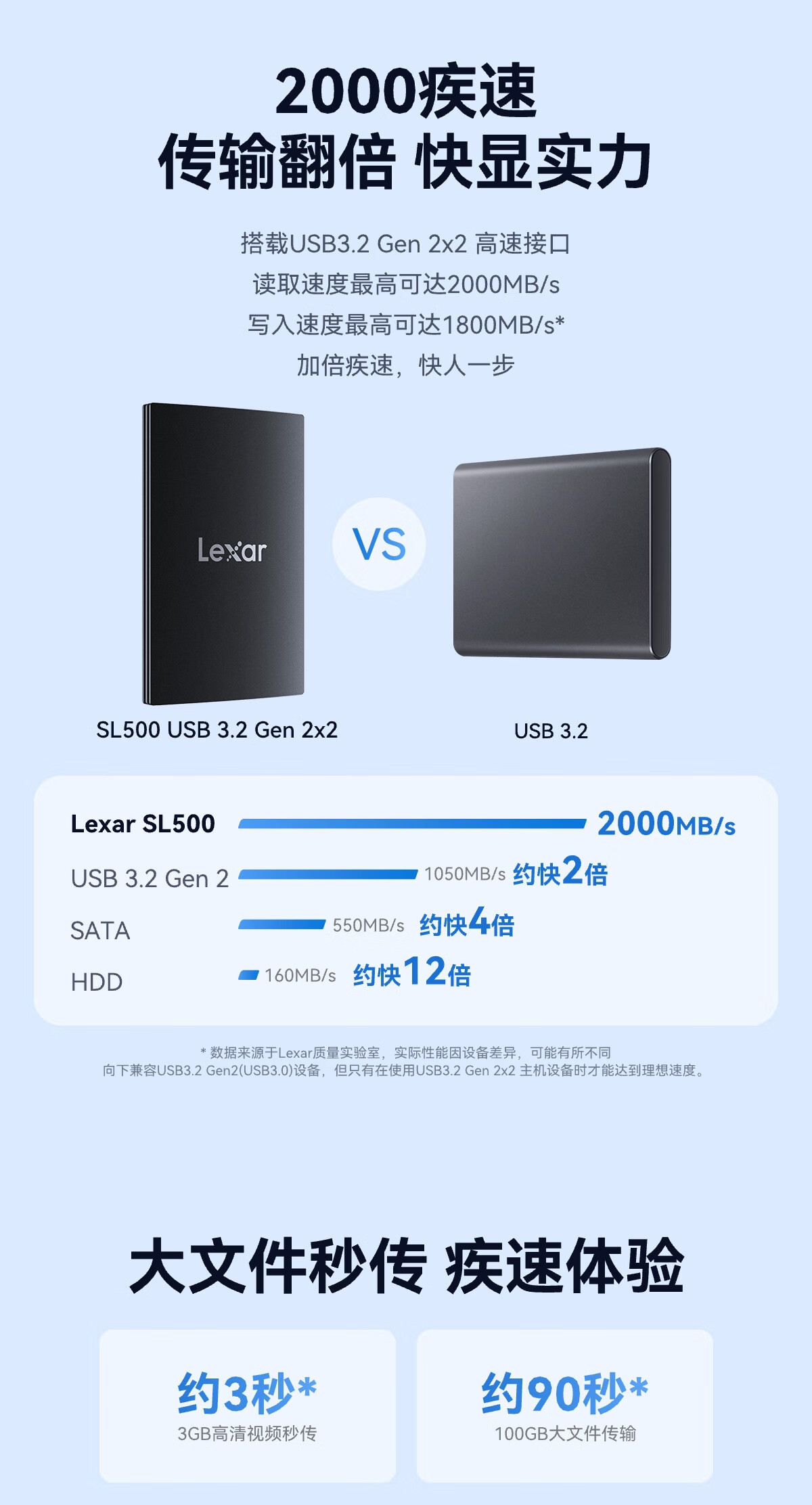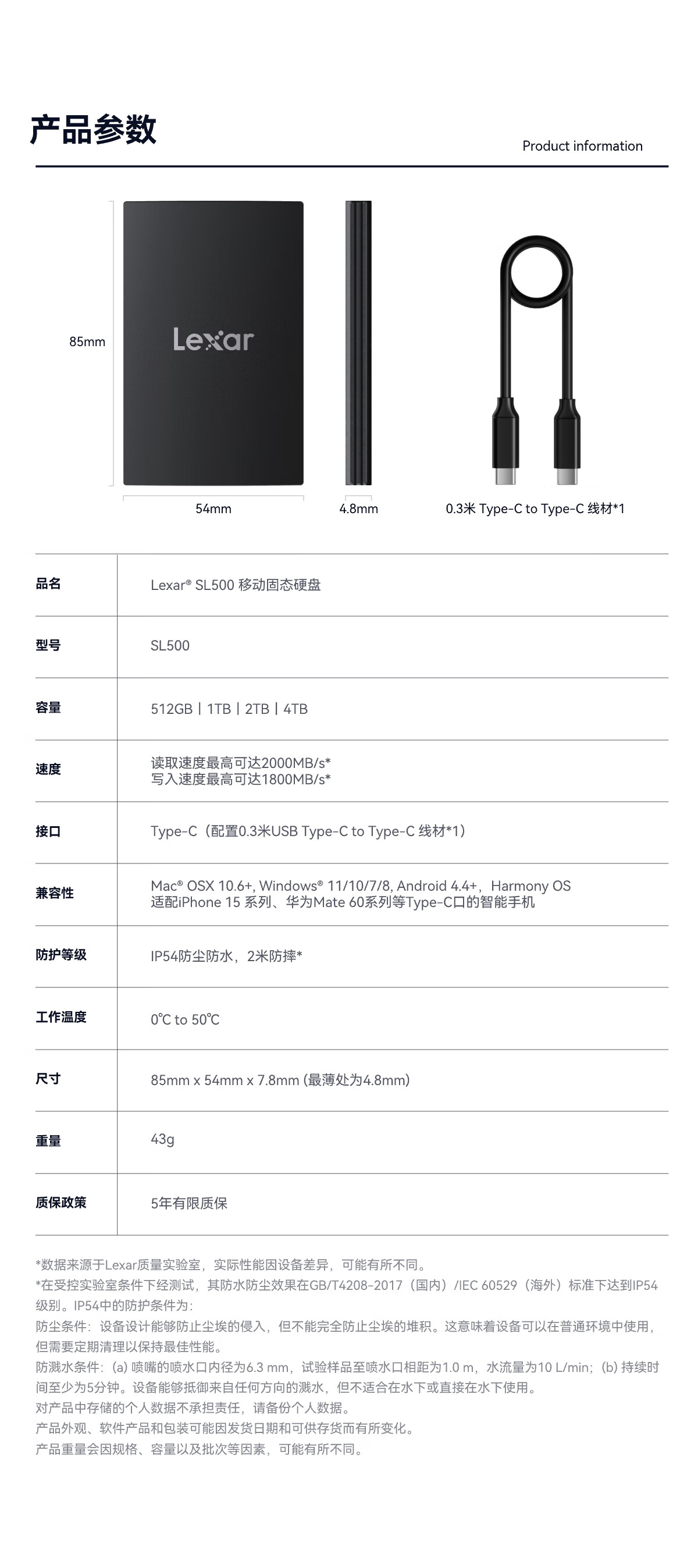 雷克沙/Lexar L500X移动硬盘 Type-c USB3.2 4TB移动固态硬盘