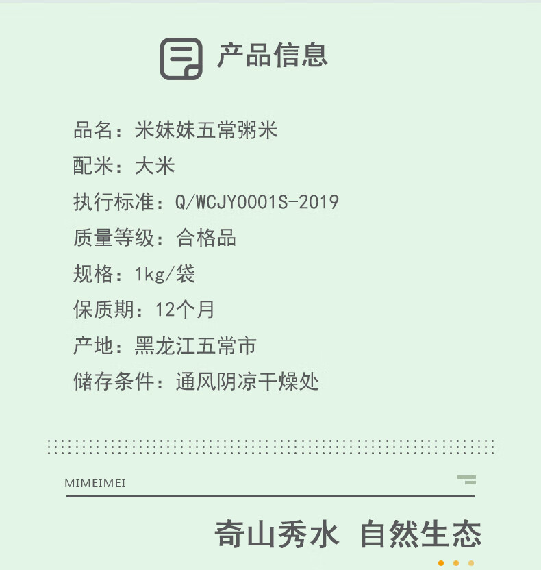 米妹妹/MIMEIMEI M016 大米 米妹妹五常粥米1kg