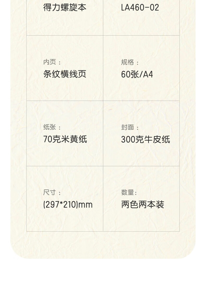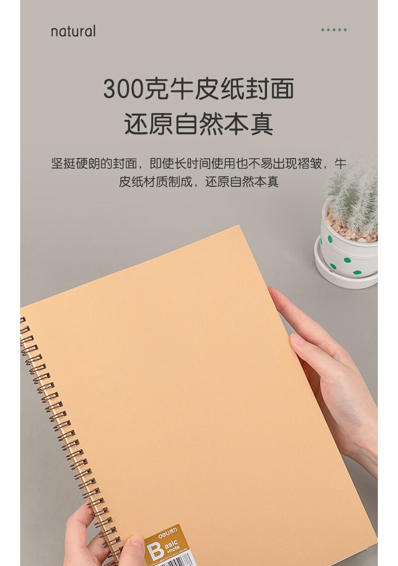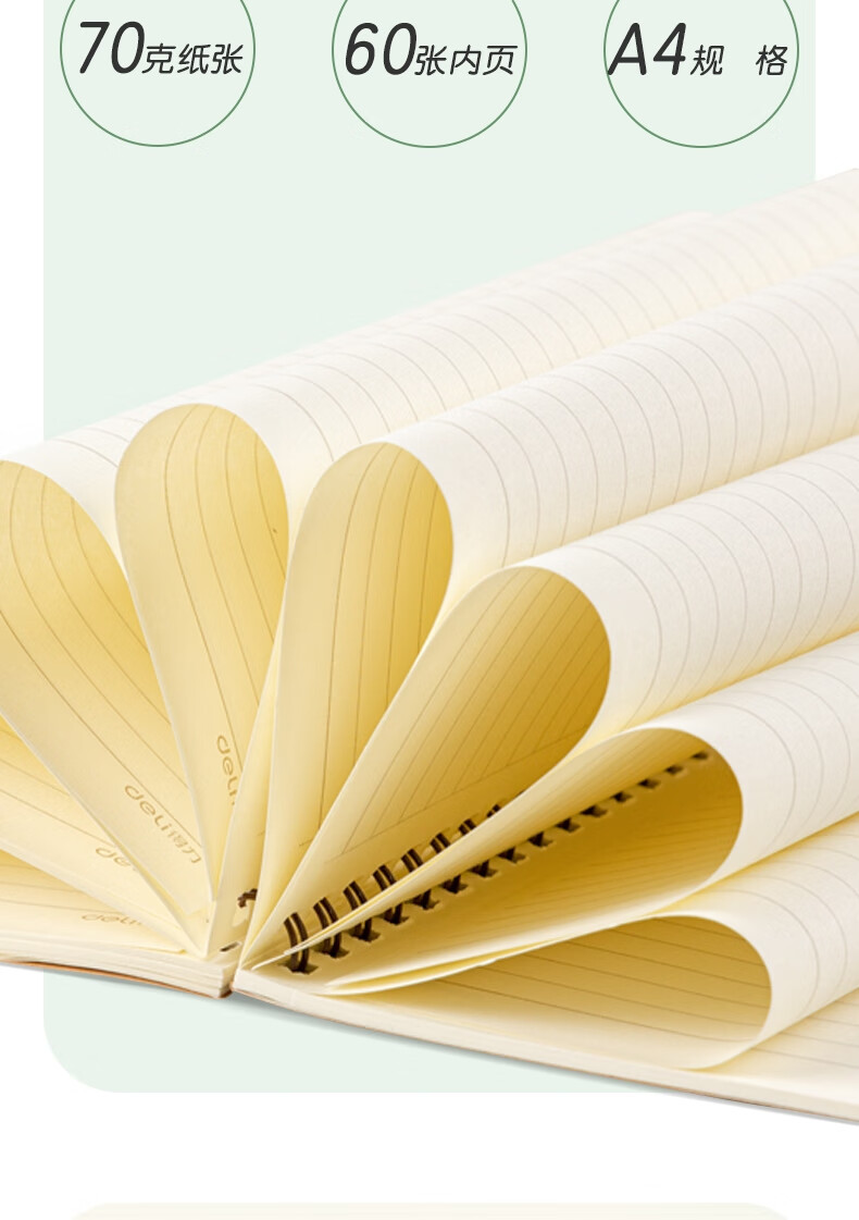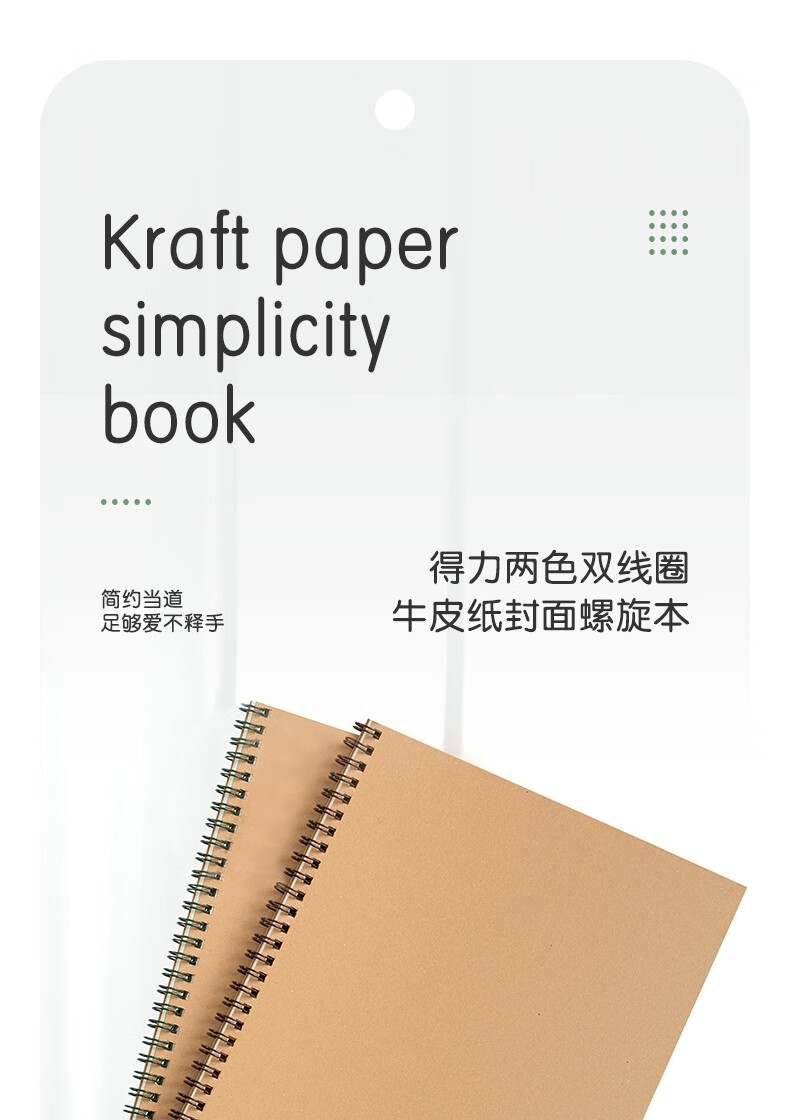 得力/deli LA460-02 薄本册 A4/60张牛皮纸笔记本本子线圈本螺旋本软抄本考研错题本学习用品2本