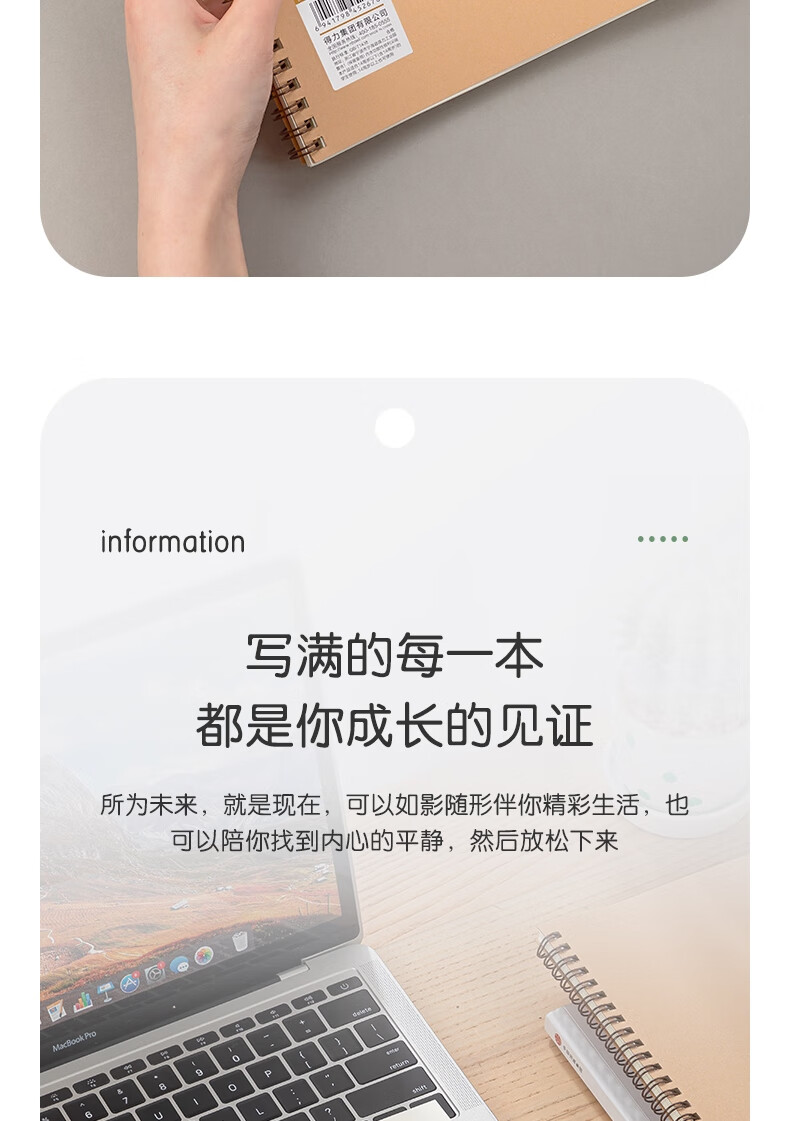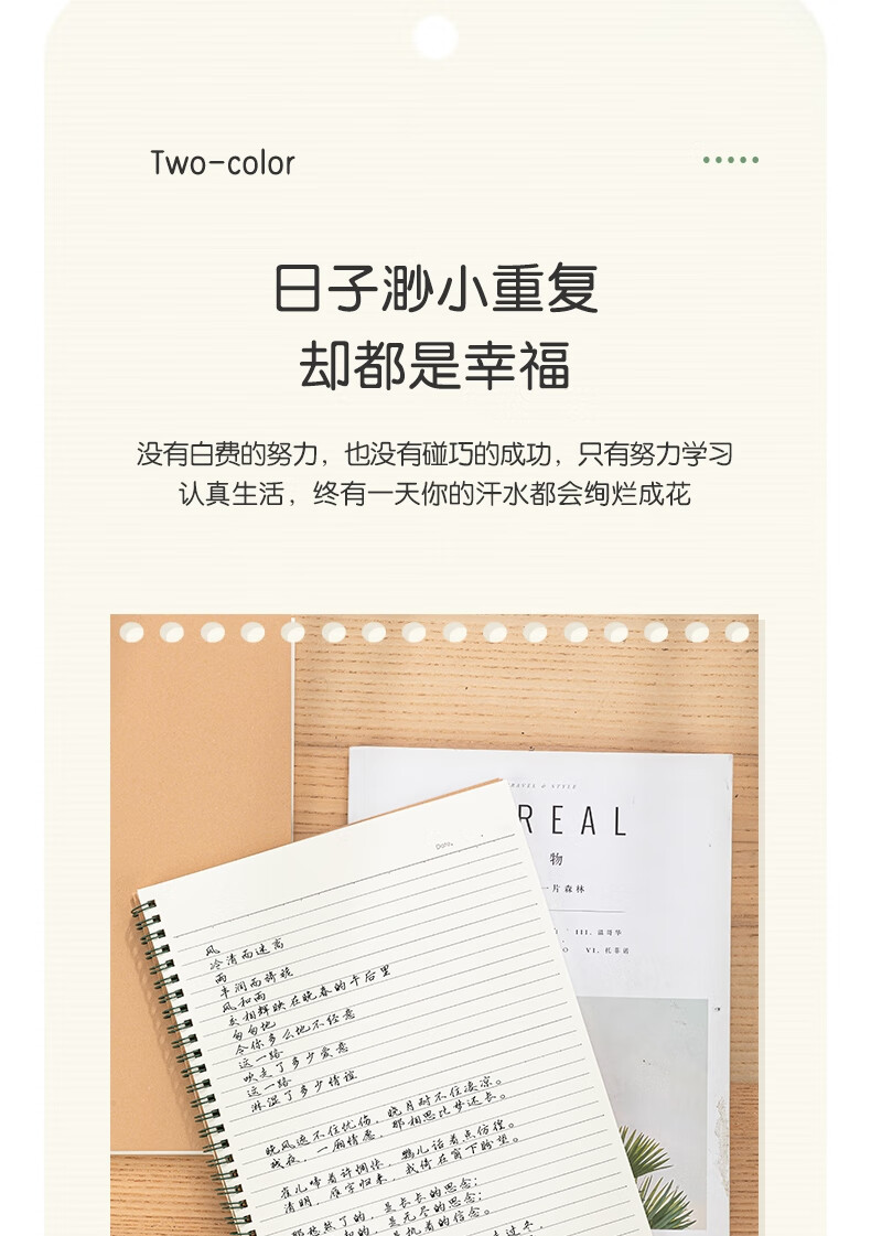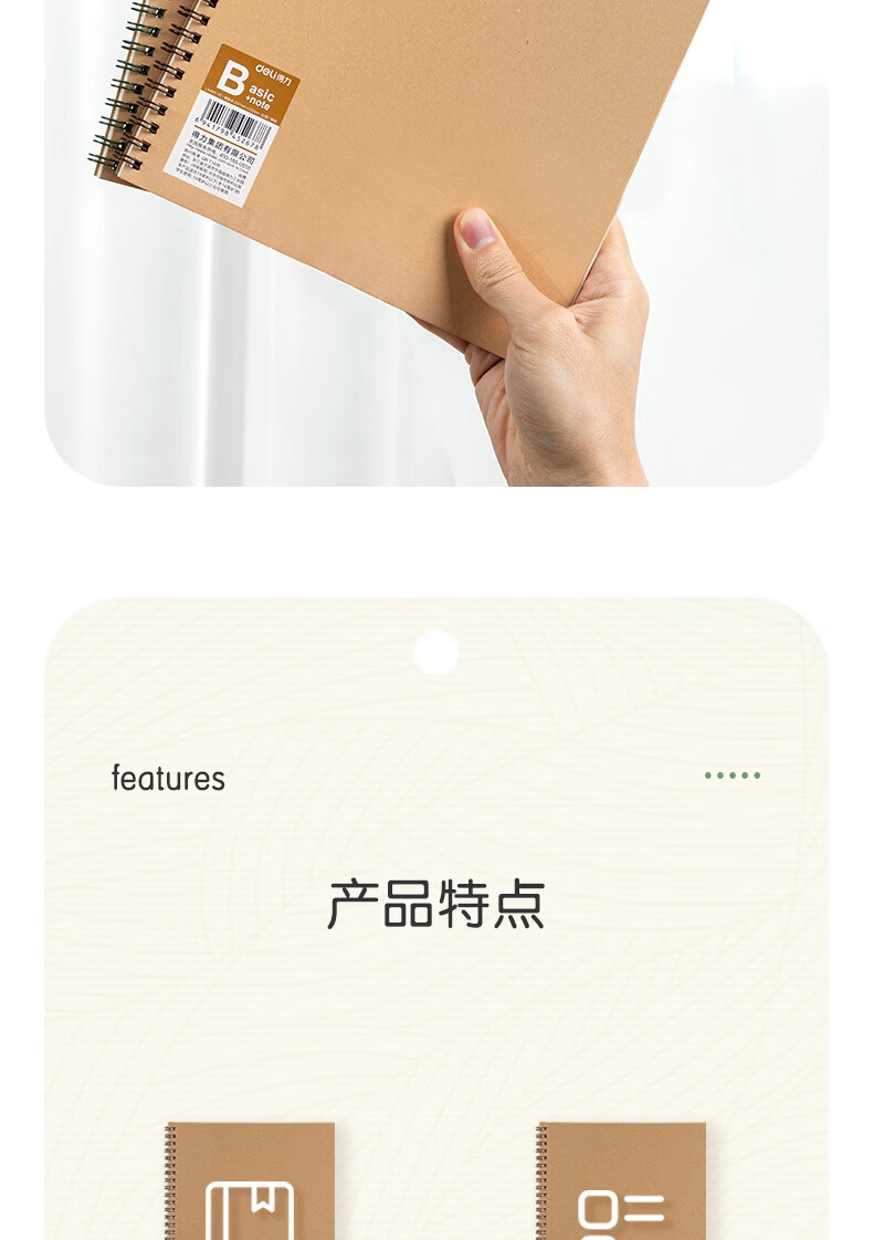 得力/deli LA460-02 薄本册 A4/60张牛皮纸笔记本本子线圈本螺旋本软抄本考研错题本学习用品2本