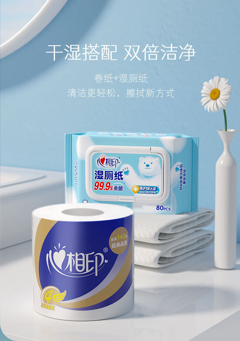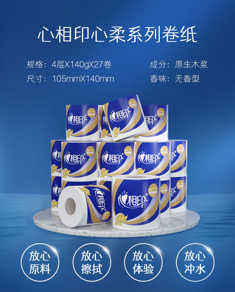 心相印/MindActUponMind BT910 卷类卫生纸 心相印140克27粒装四层卷筒卫生纸(四层