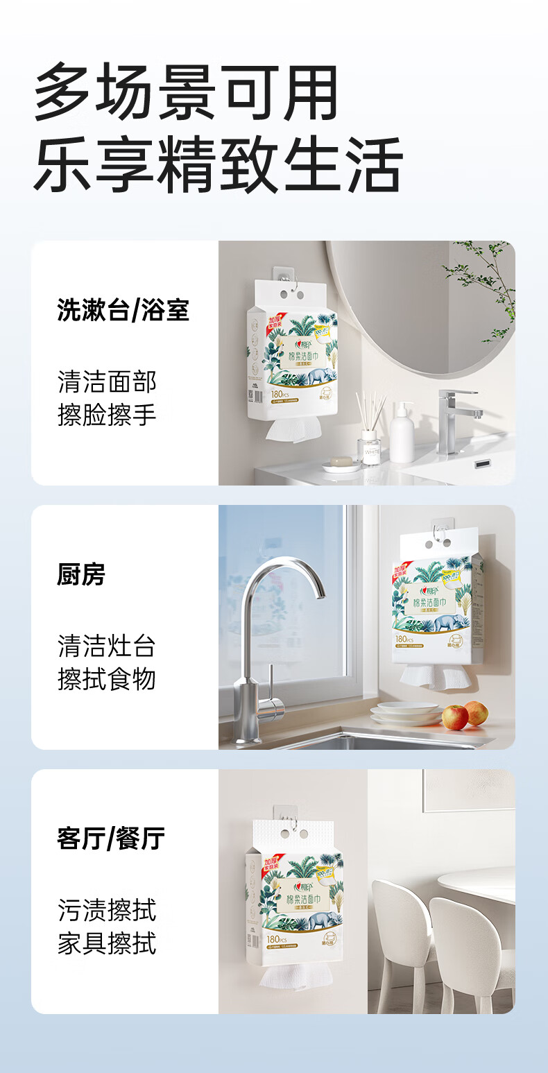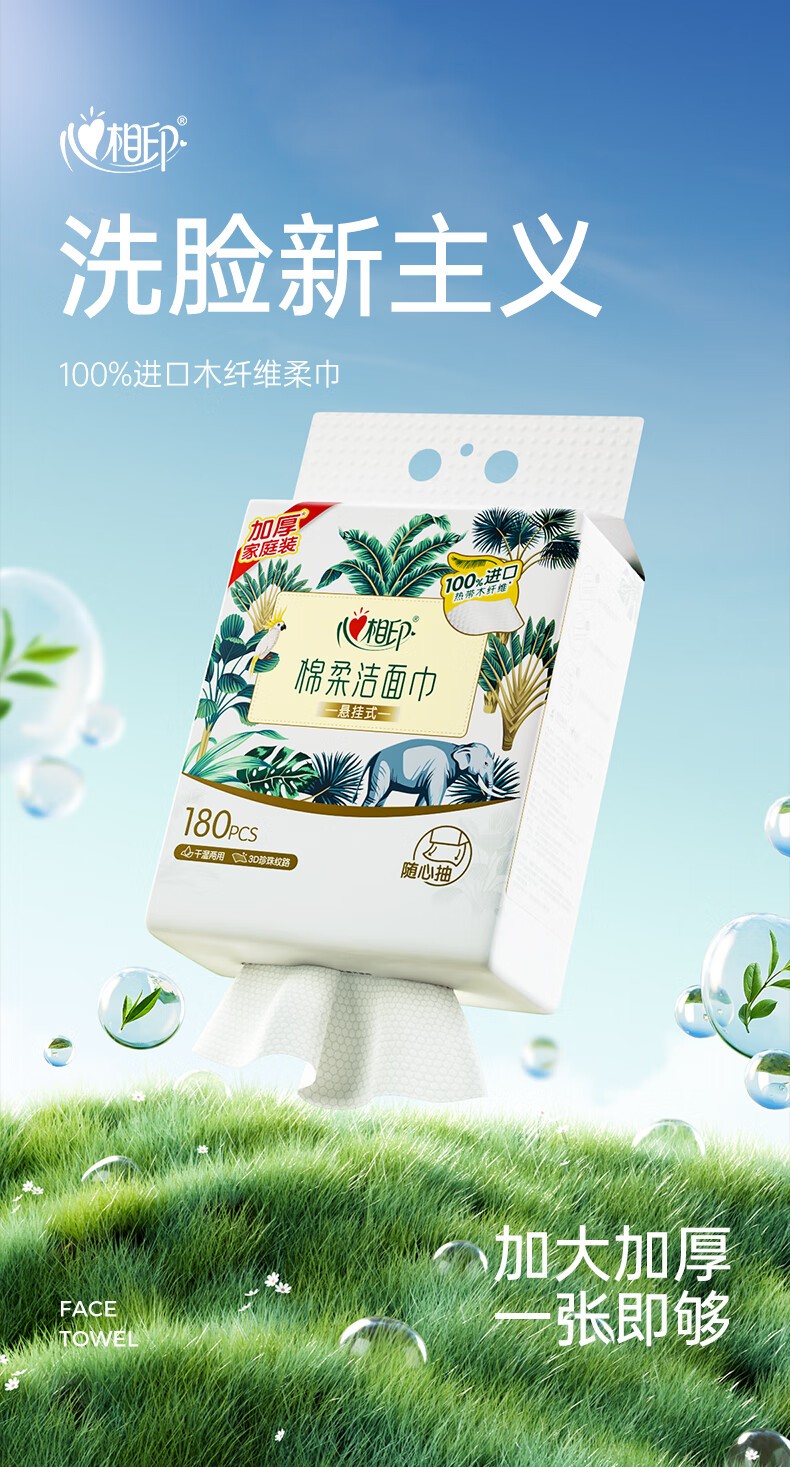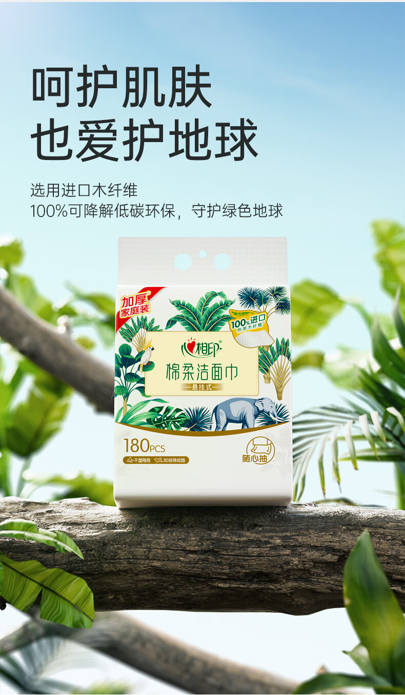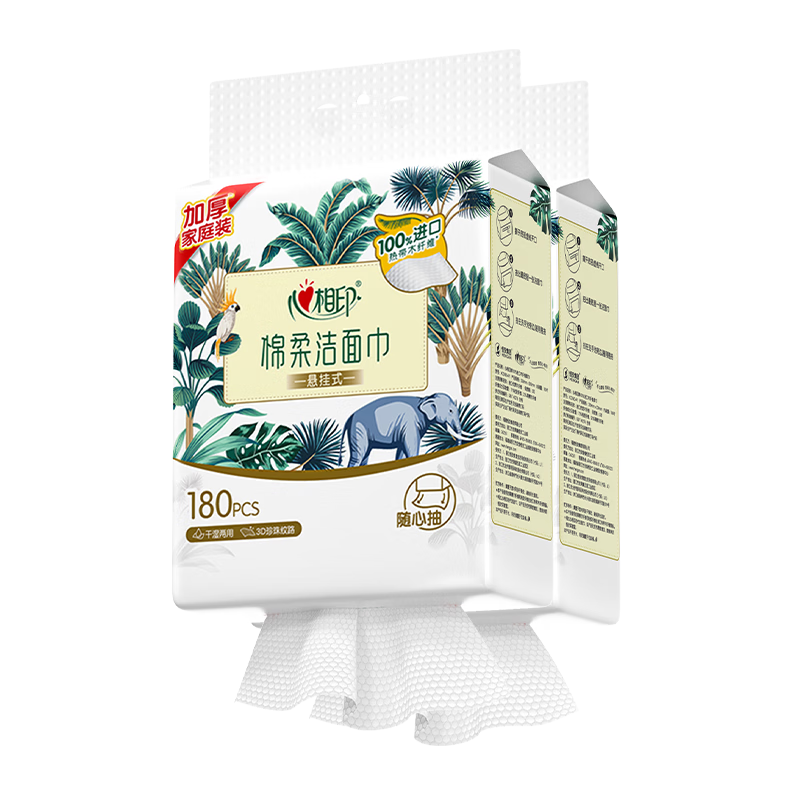 心相印/MindActUponMind XCD180+P1 软包抽取式面纸心相印棉柔系列180片装悬挂式洗脸巾(随心抽)*2提