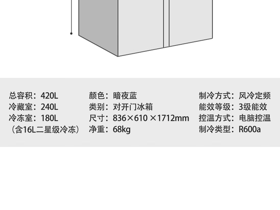 创维/Skyworth BCD-420WKY电冰箱 暗夜蓝 风冷对开冰箱 420L