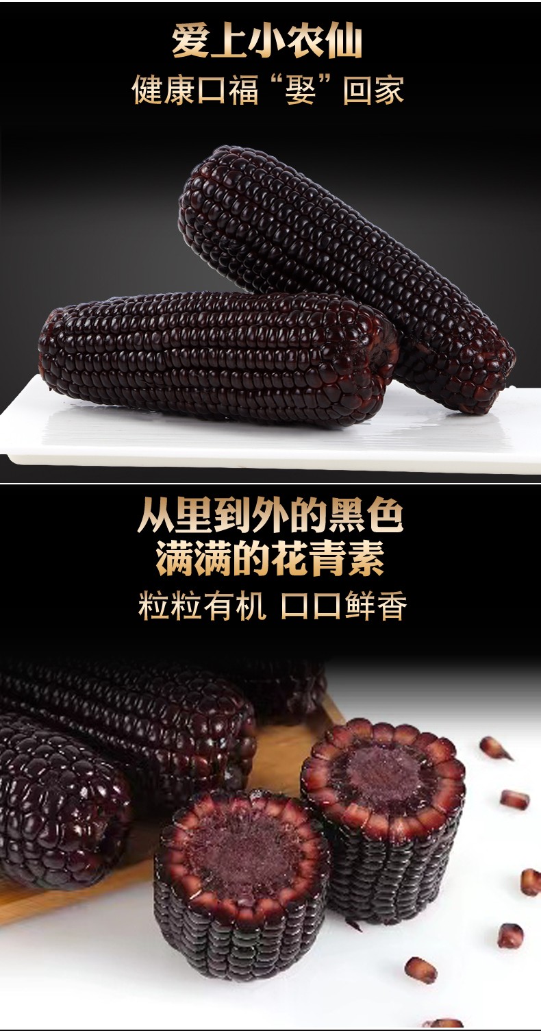 小农仙 200 鲜食玉米 富含花青素健康食品200克/根 有机礼盒200克*8根