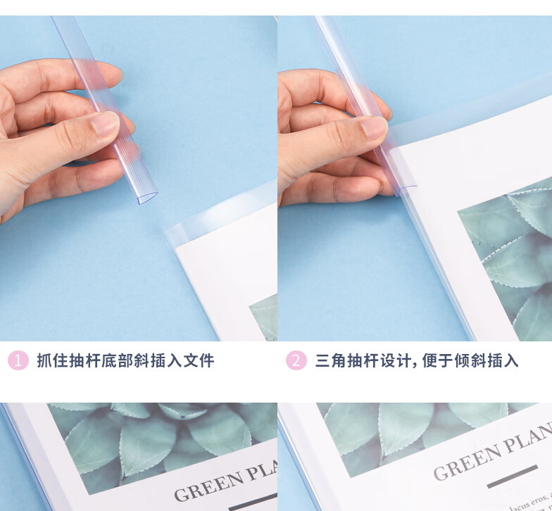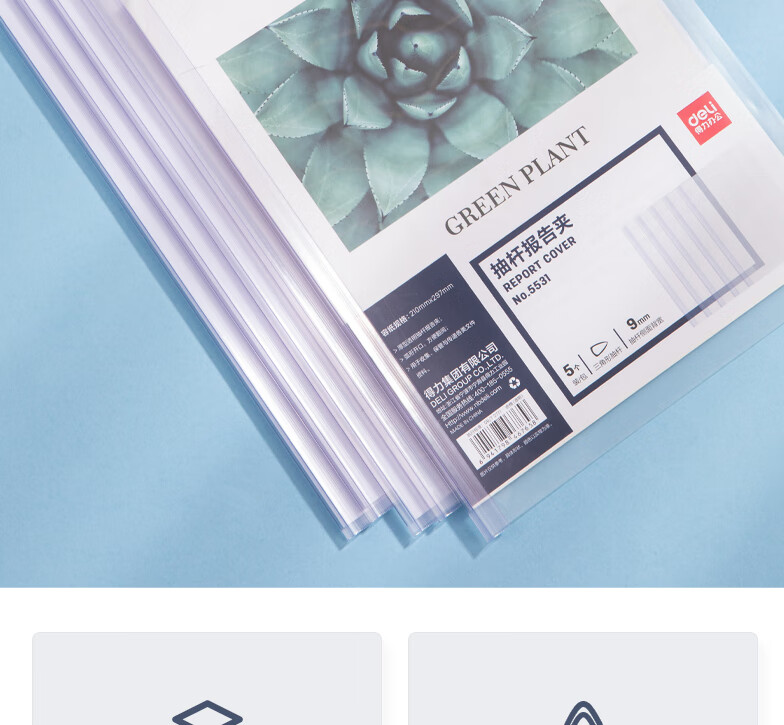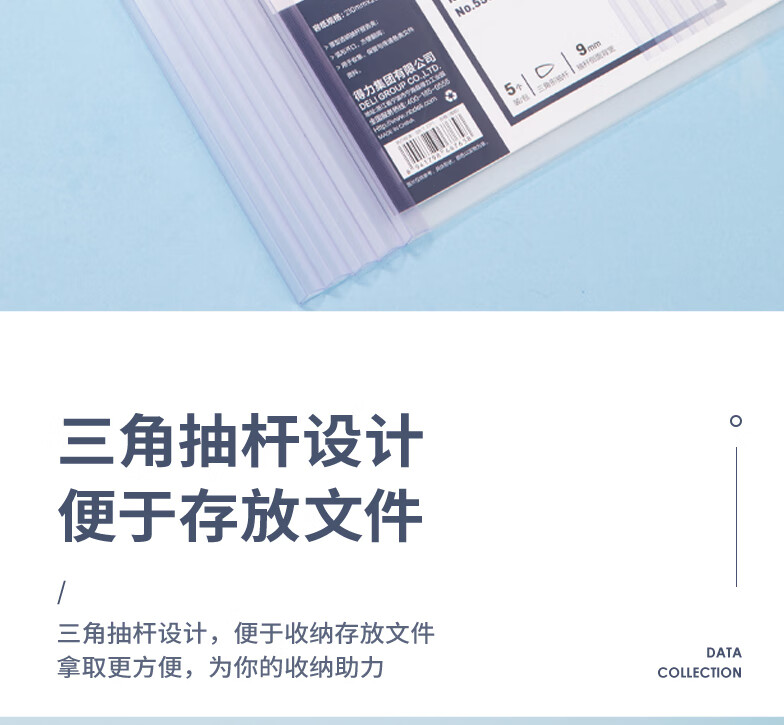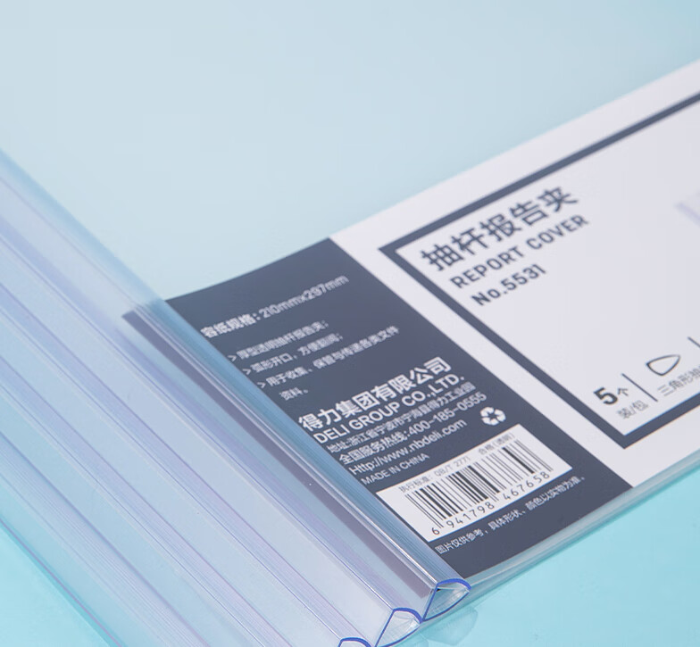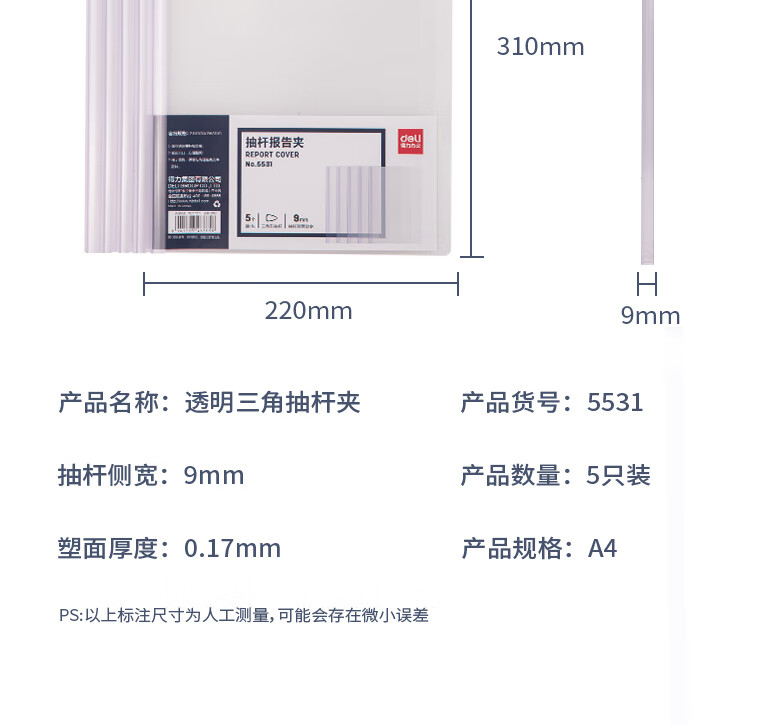 得力/deli 5531 文件夹 拉杆夹5只装 A4/9mm文件夹三角杆抽杆夹学生试卷夹资料册简历产检报告收纳夹 透明