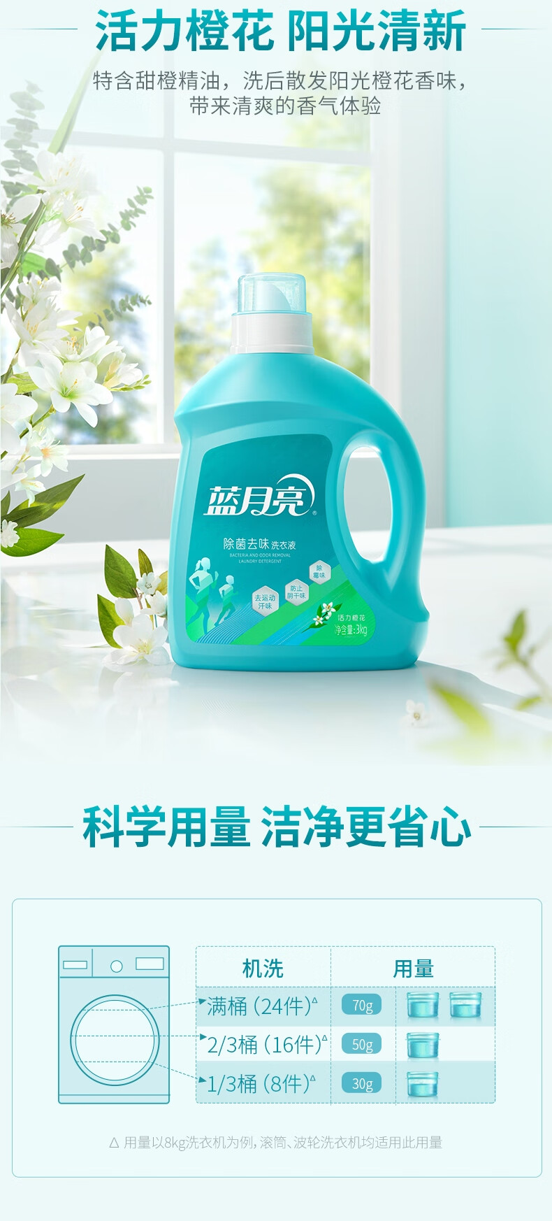 蓝月亮/Bluemoon 3kg+500g×6洗衣液/洗衣粉 活力橙花除菌去味洗衣液3kg瓶+500g袋×6