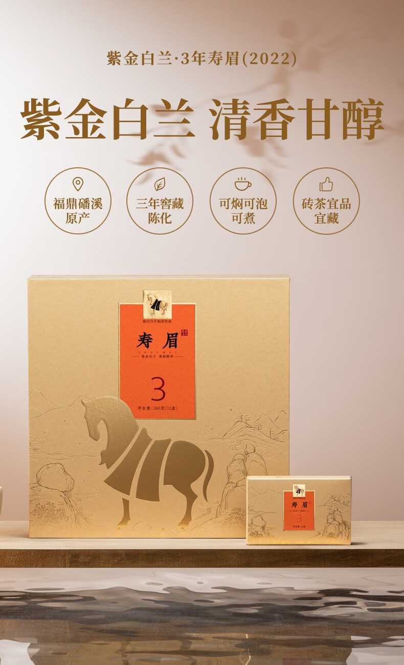 八马/BAMA Z0117 普洱 紫金白兰 福鼎白茶寿眉3年藏老白茶送礼茶叶礼盒装240g
