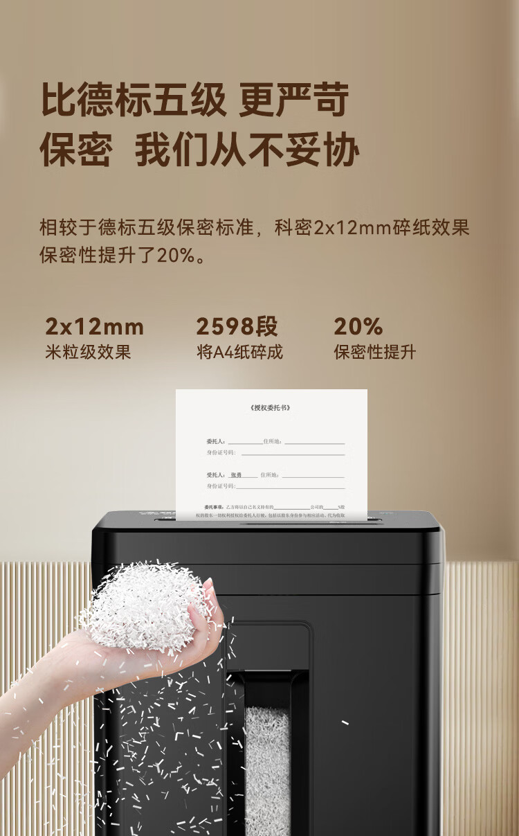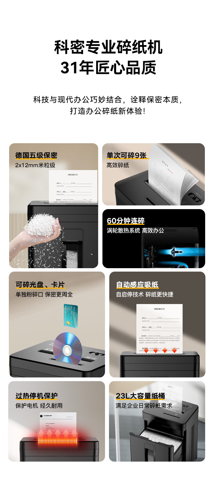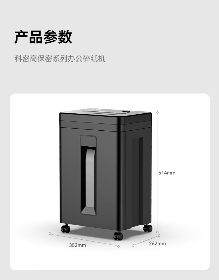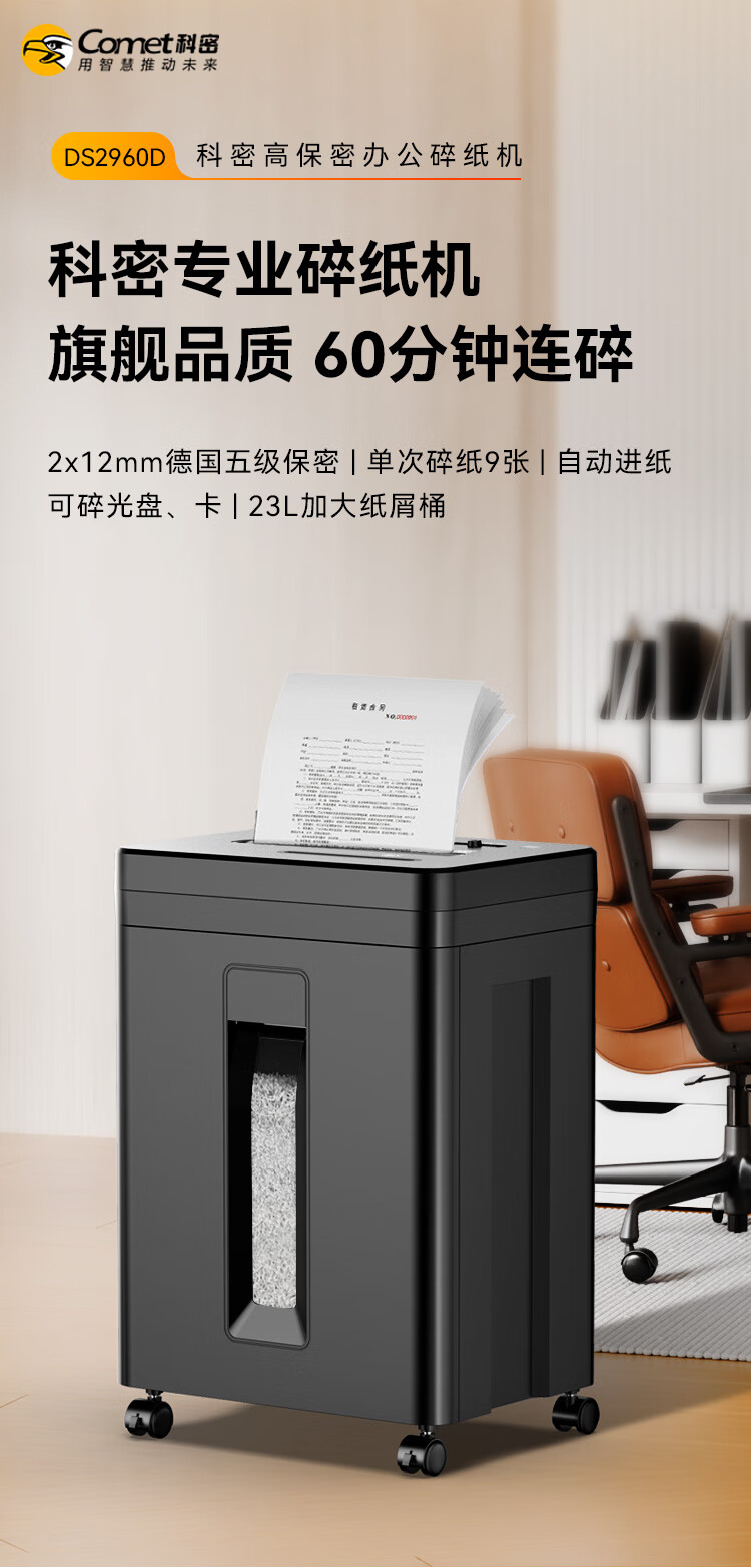 科密/Comet DS2960D 碎纸机 9张5级保密碎纸机办公室专用大型商务办公家用文件粉碎机(高速碎 23L)