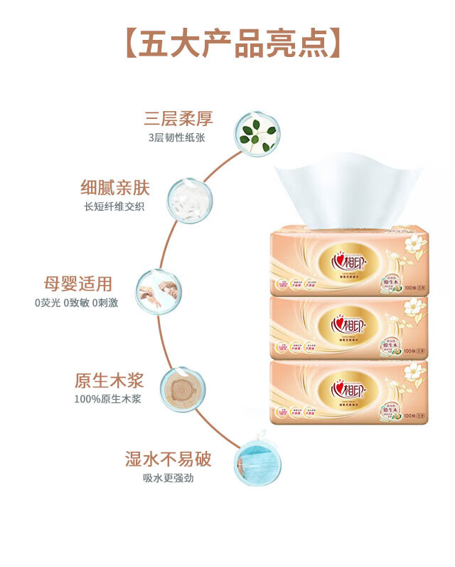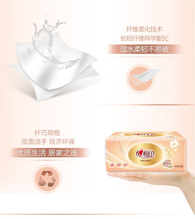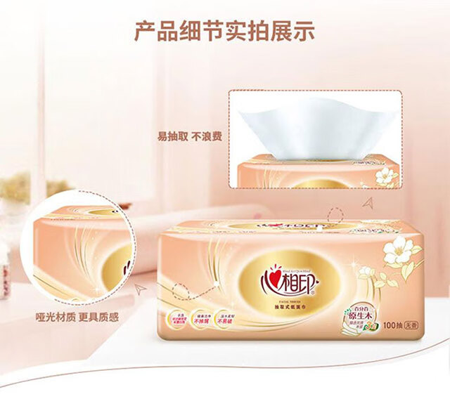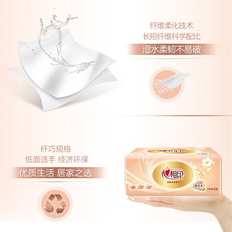 心相印/MindActUponMind DT55100 软包抽取式面纸 金装金典100抽三层塑装纸面巾9包装*3提