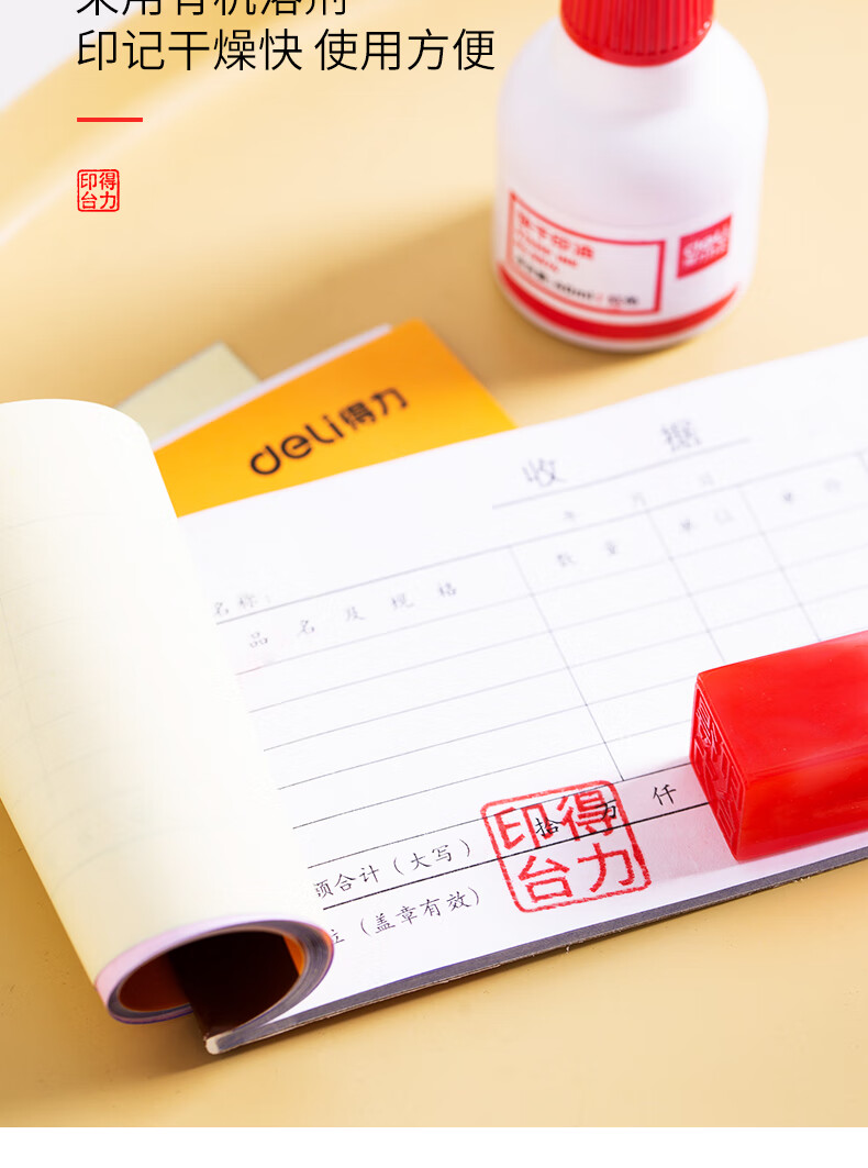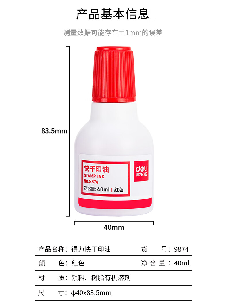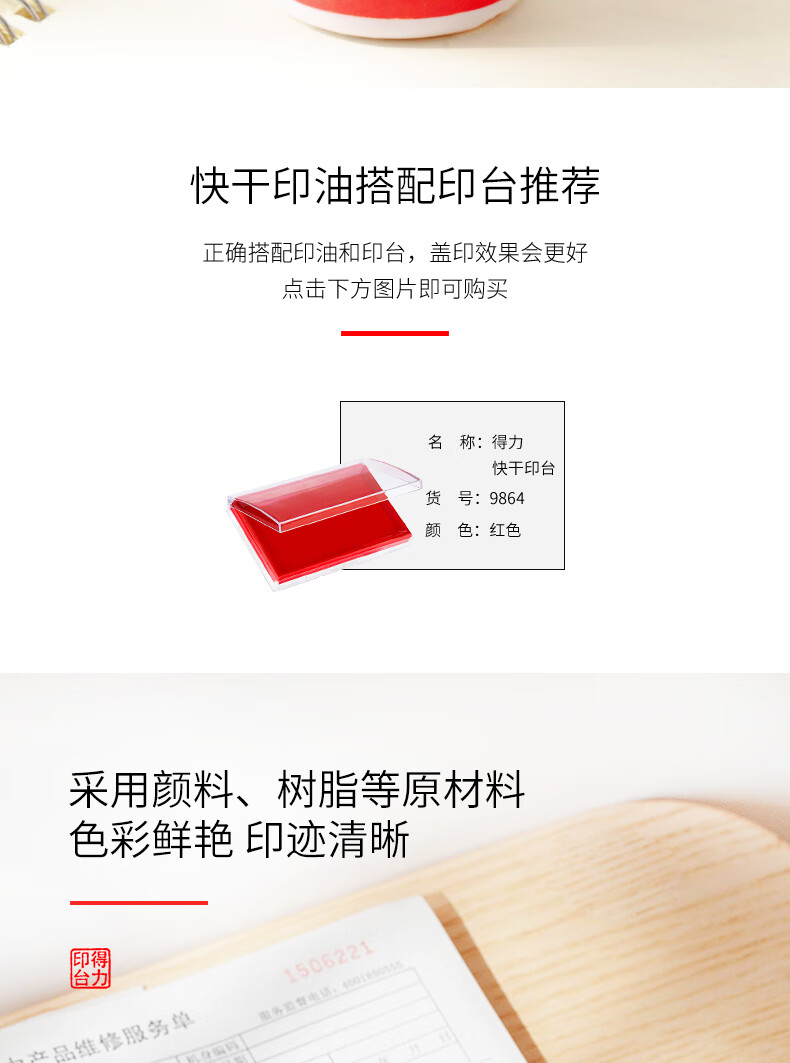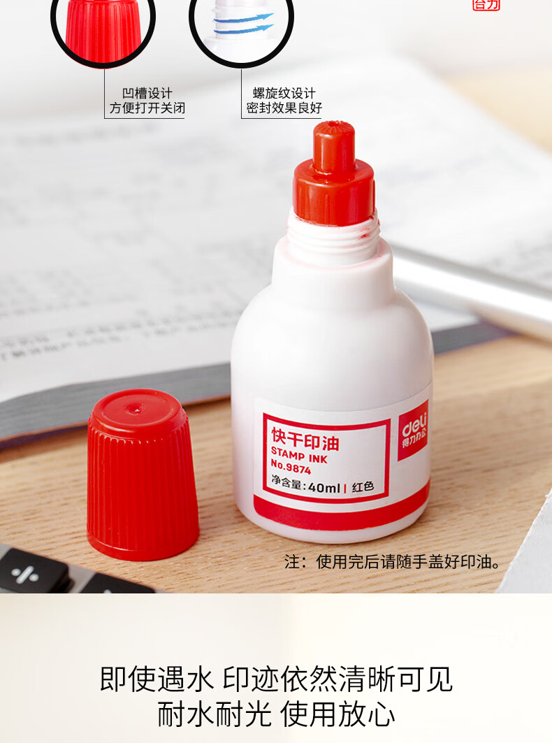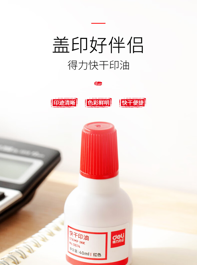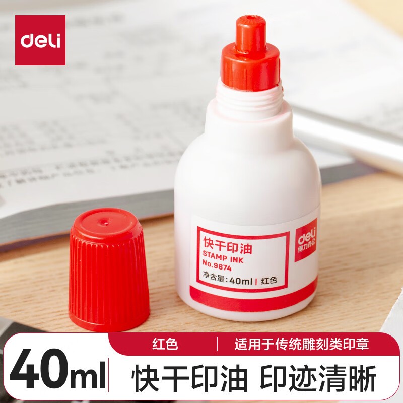 得力/deli 9874 印台/印泥/印油 40ml财务印章印泥快干清洁印油 办公用品 红色