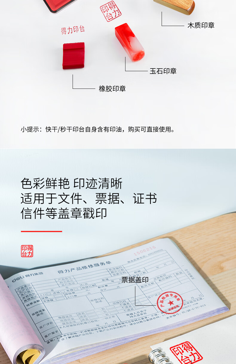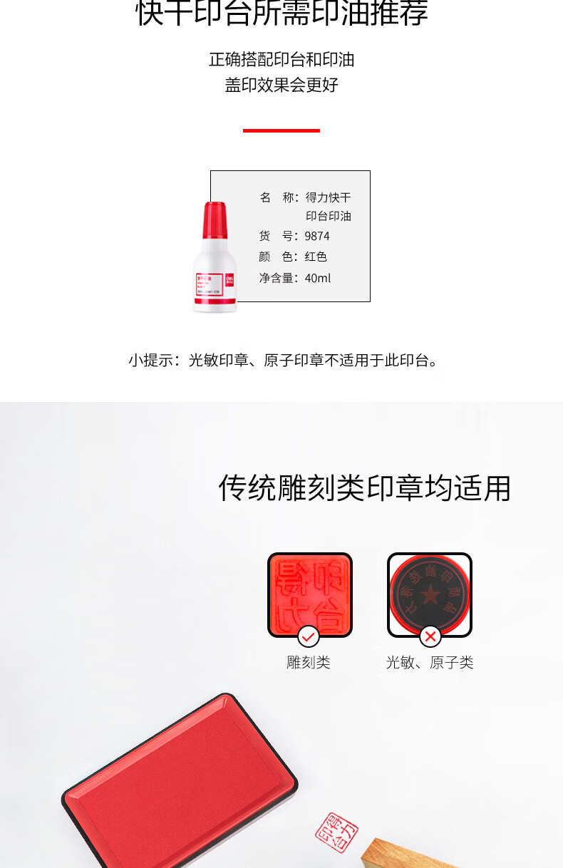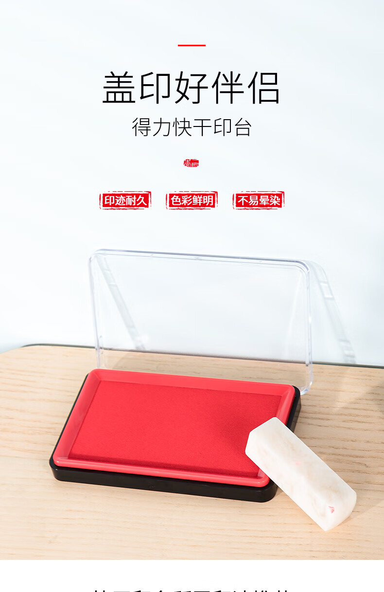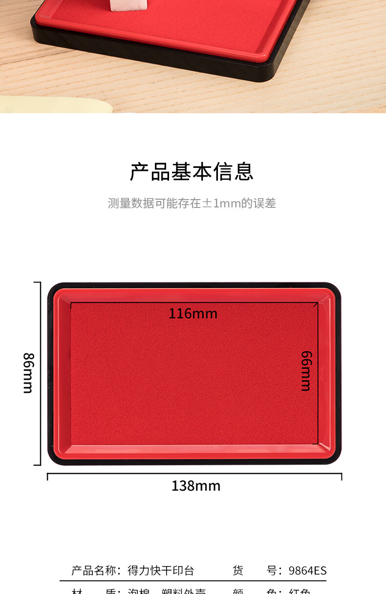 得力/deli 9864ES 印台/印泥/印油 138*86mm方形快干印台印泥 清晰印记 财务用品 办公用品 红色