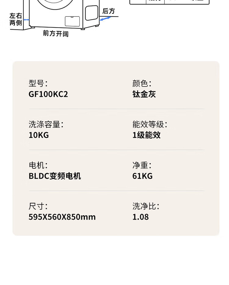 创维/Skyworth GF100KHC3洗衣机 钛金灰 10公斤带烘干