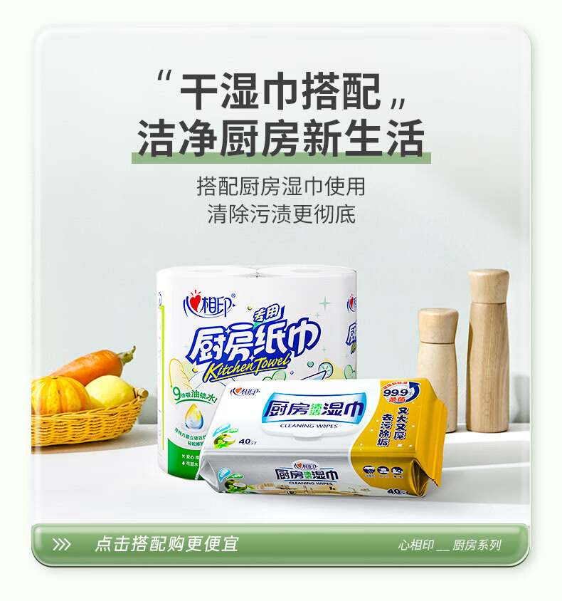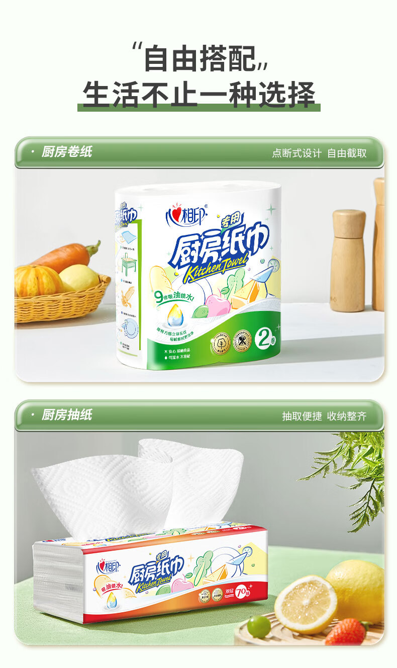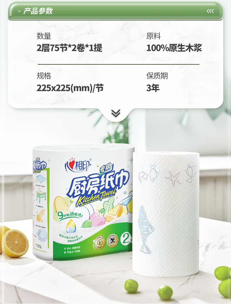 心相印/MindActUponMind KT102 卷类卫生纸 2粒装75节印花厨房纸巾 2卷*5提