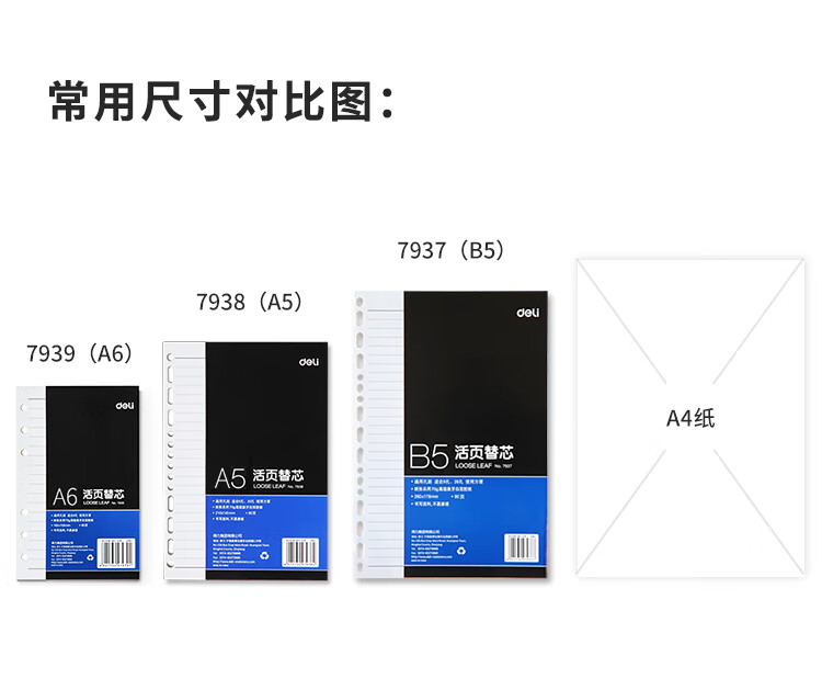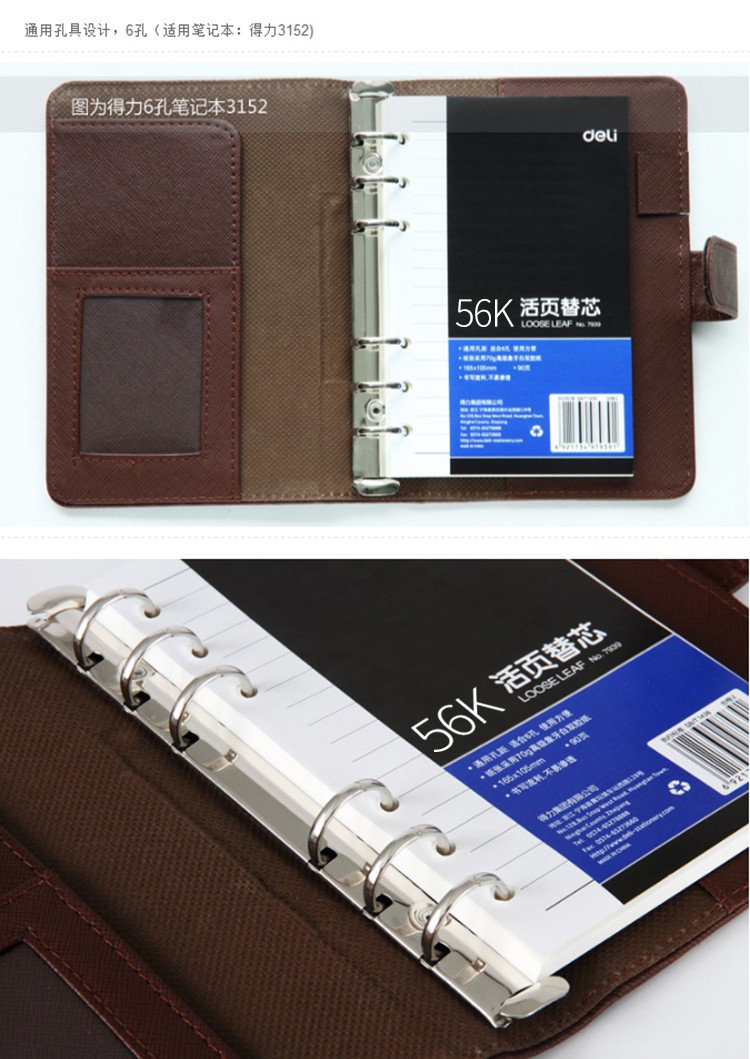 得力/deli 7939 薄本册 象牙白笔记本记事本6孔活页替芯56K/90张