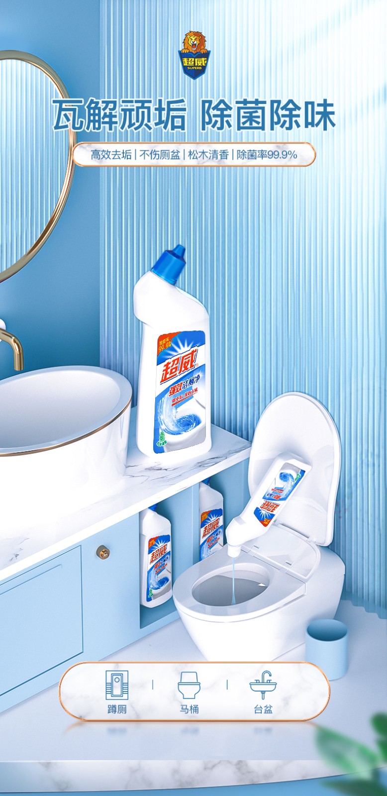 超威/SUPERB 500g 多用途清洁剂 洁厕灵洁厕液洁厕剂马桶厕所清洁剂30瓶装