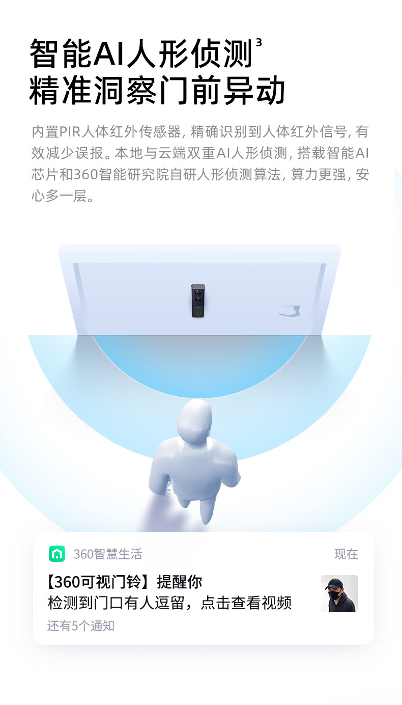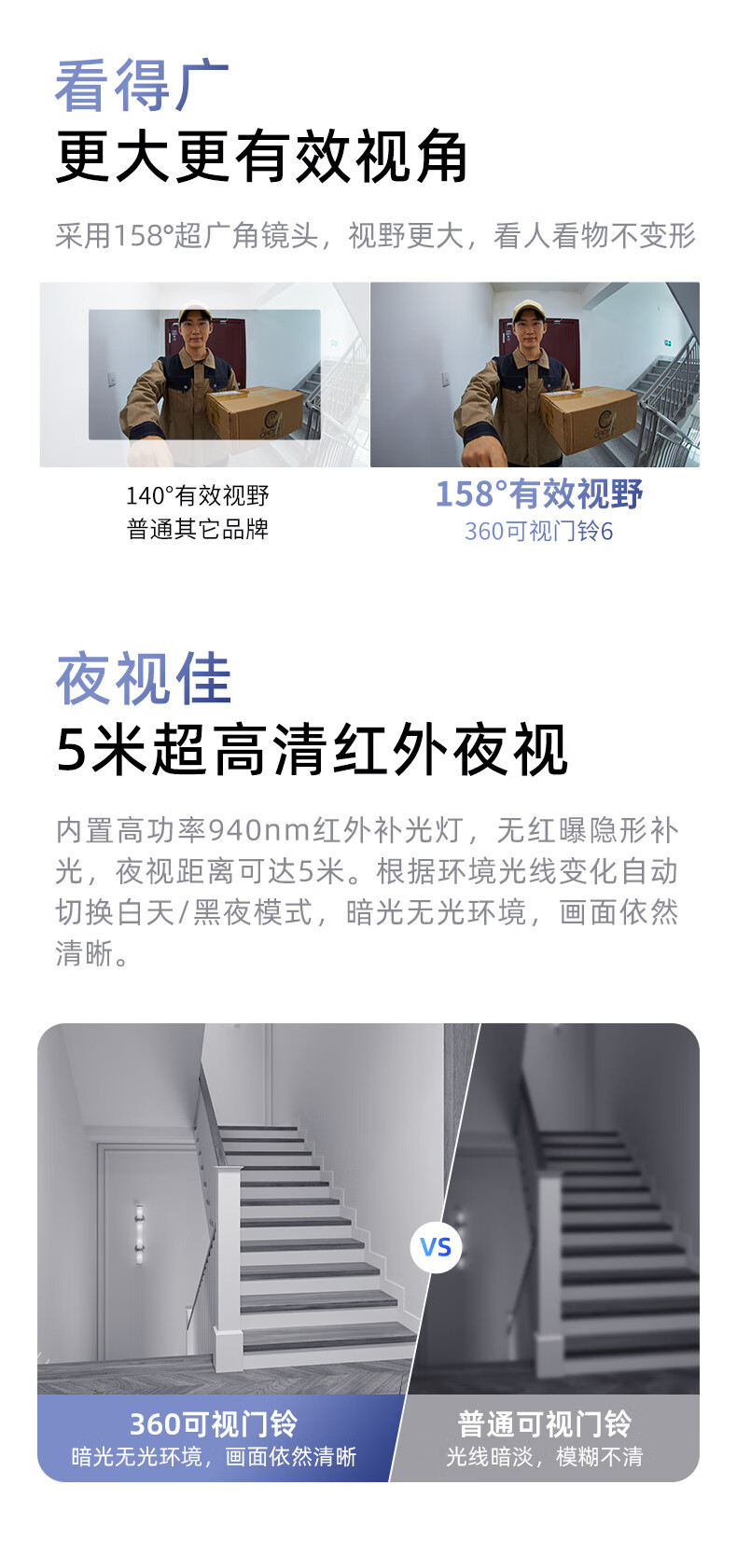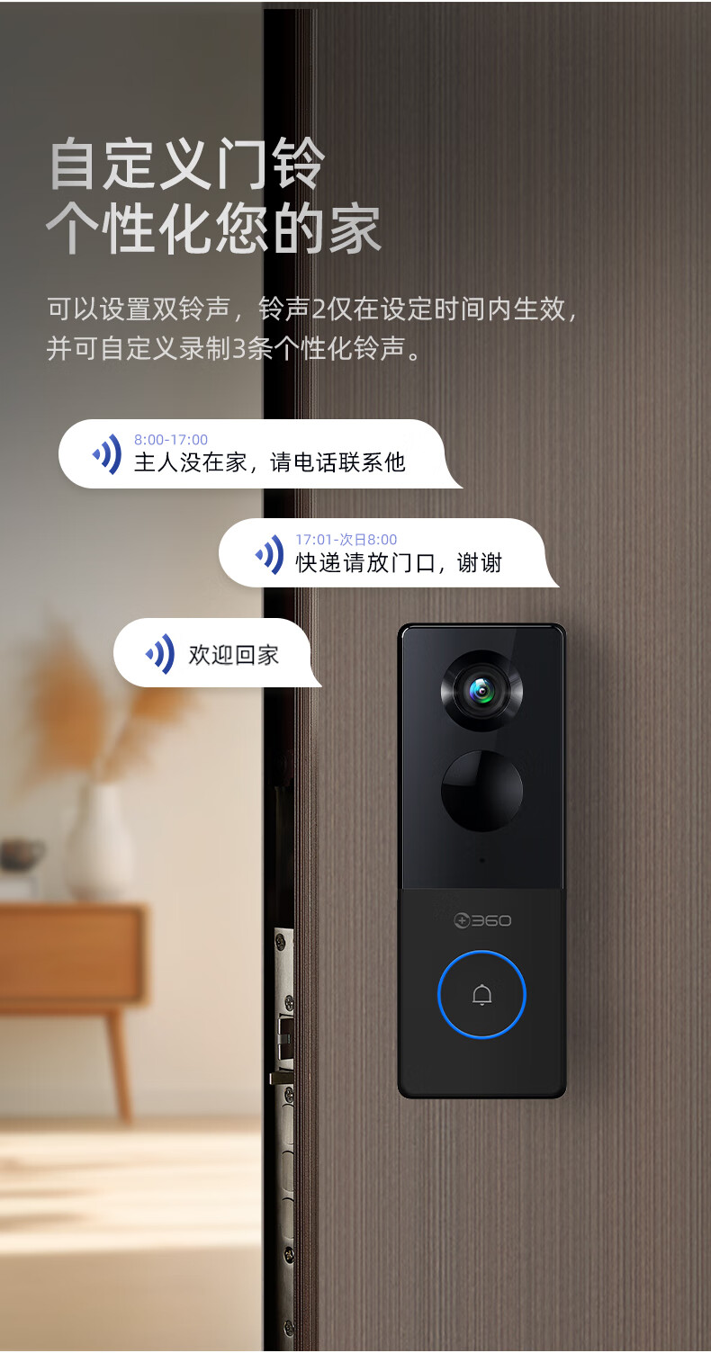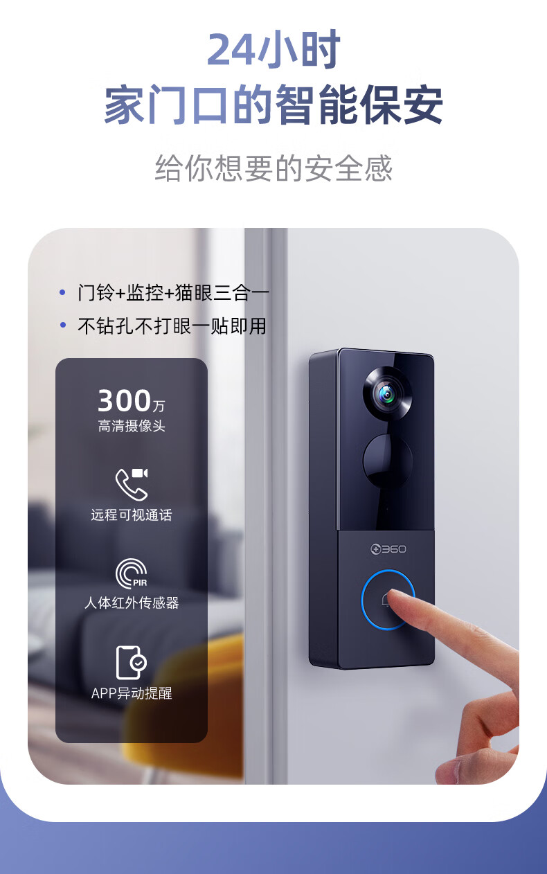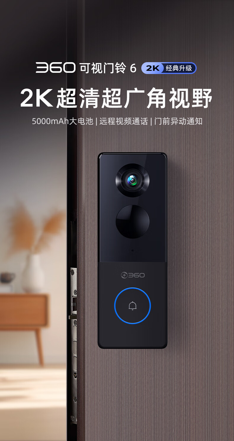 360 R6门禁系统 300W高清画质 智能门铃电子猫眼 无线wifi手机远程查看对讲