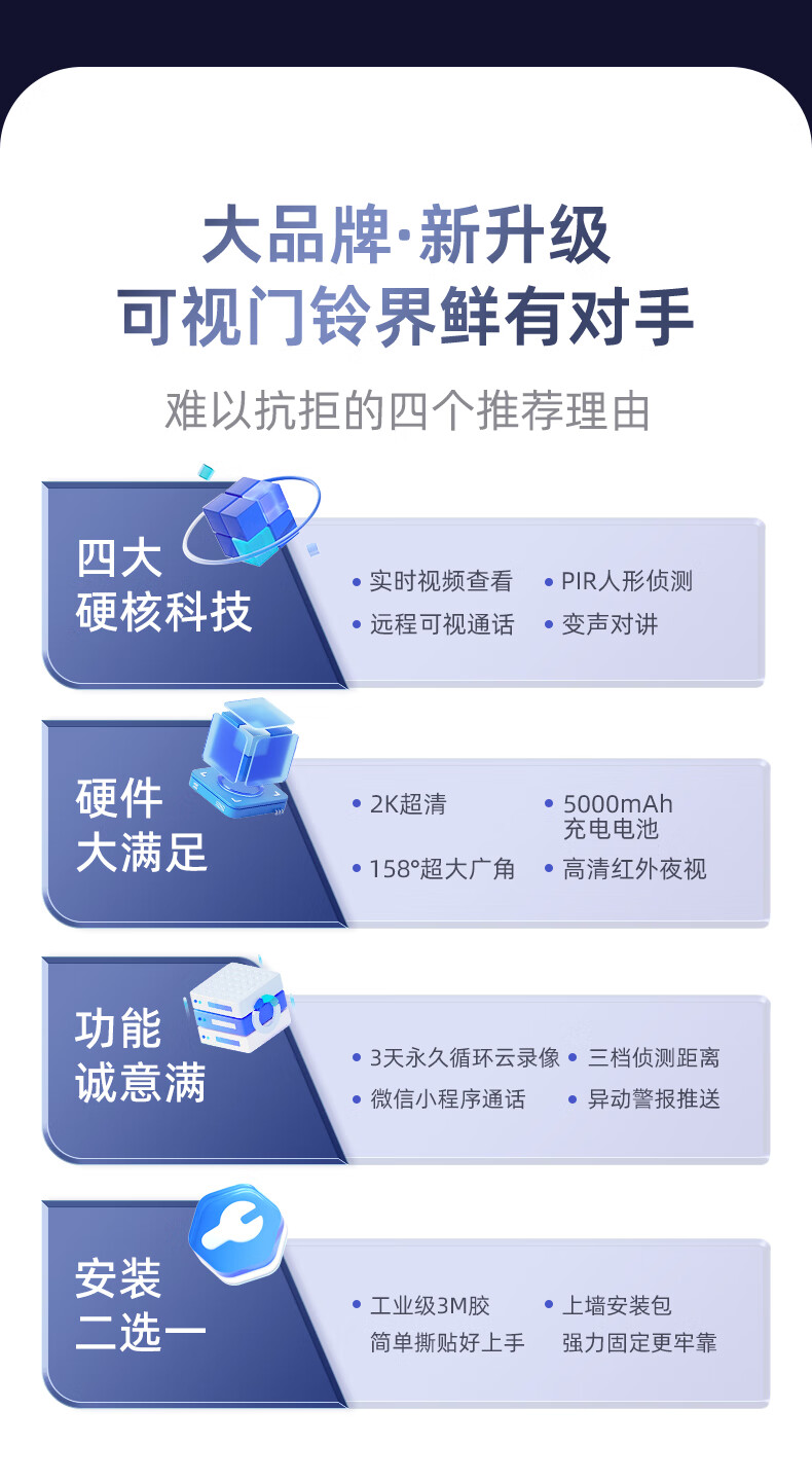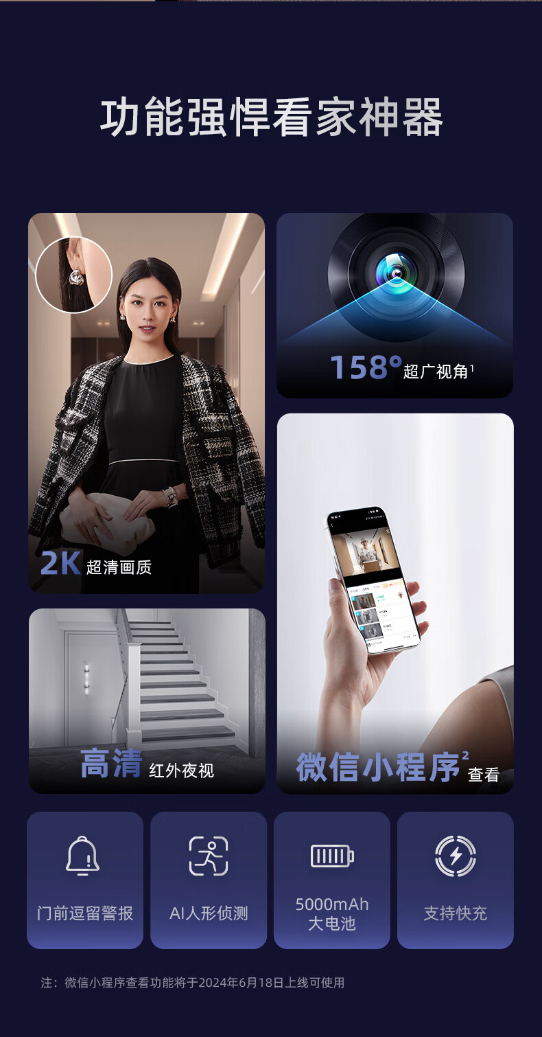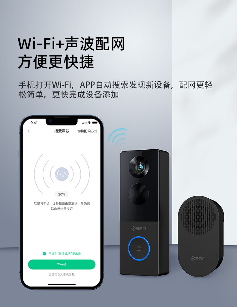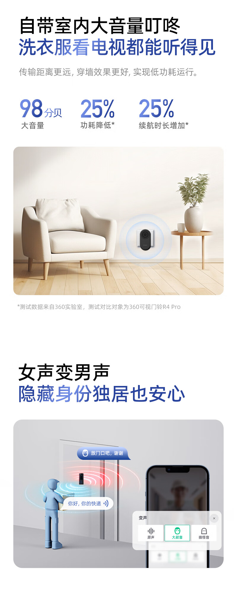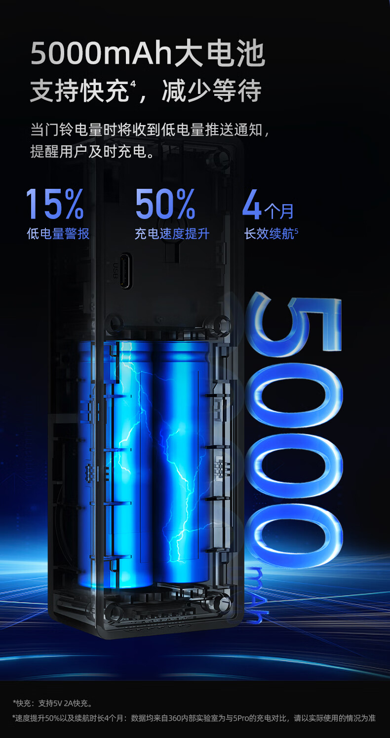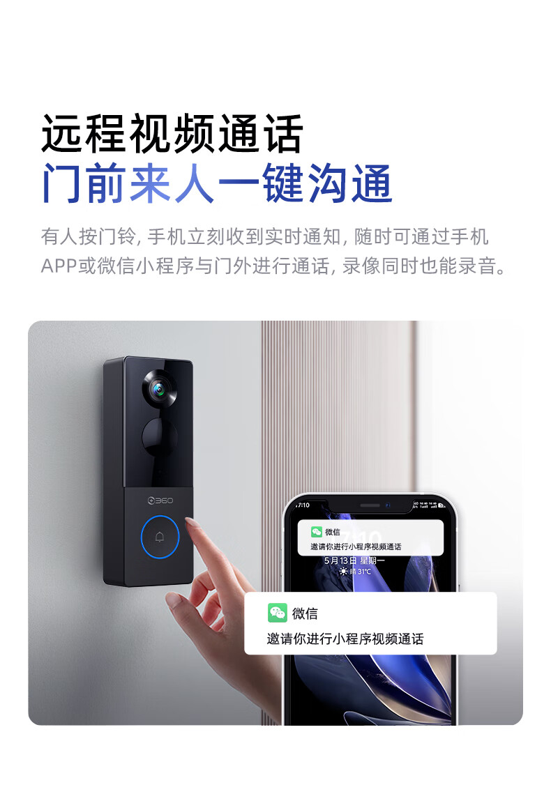 360 R6门禁系统 300W高清画质 智能门铃电子猫眼 无线wifi手机远程查看对讲