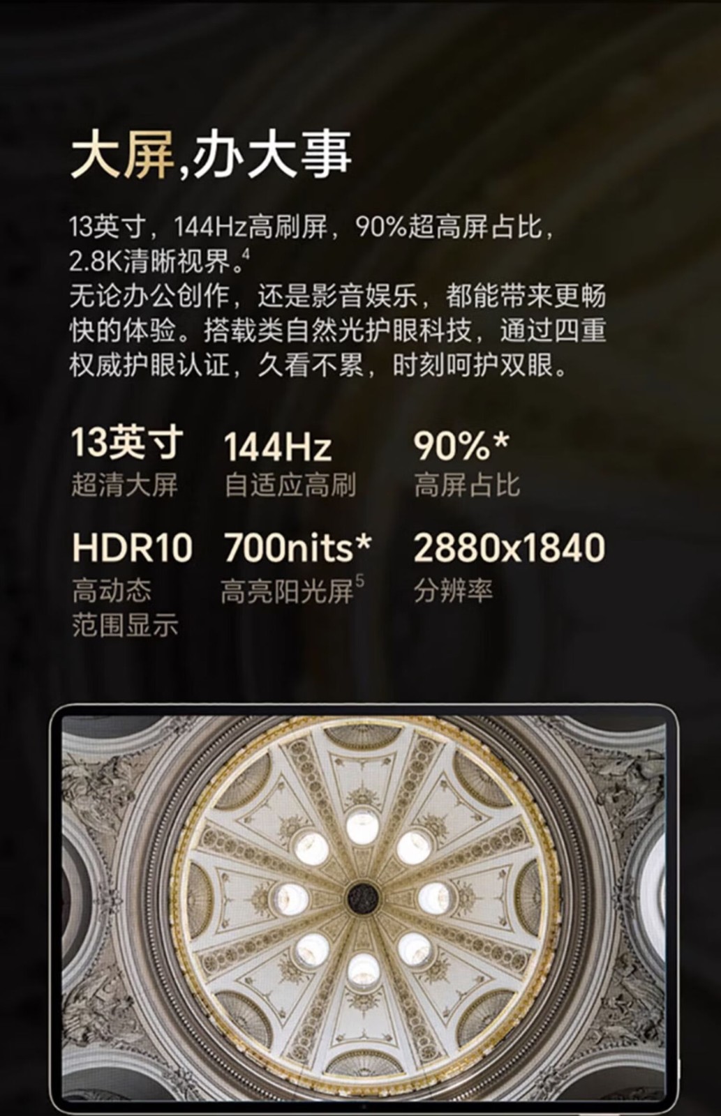 荣耀/honor MagicPad13平板式微型计算机 13英寸144Hz高刷护眼全面屏 高通888 12G+256G WiFi版 星空灰