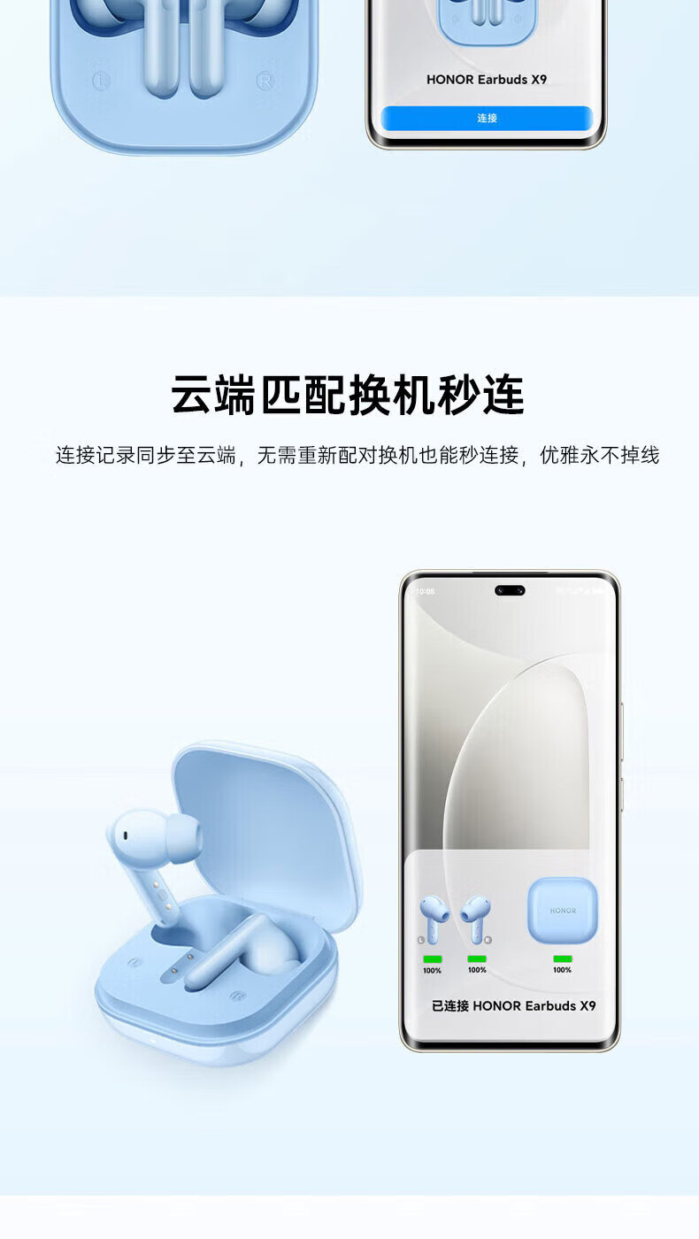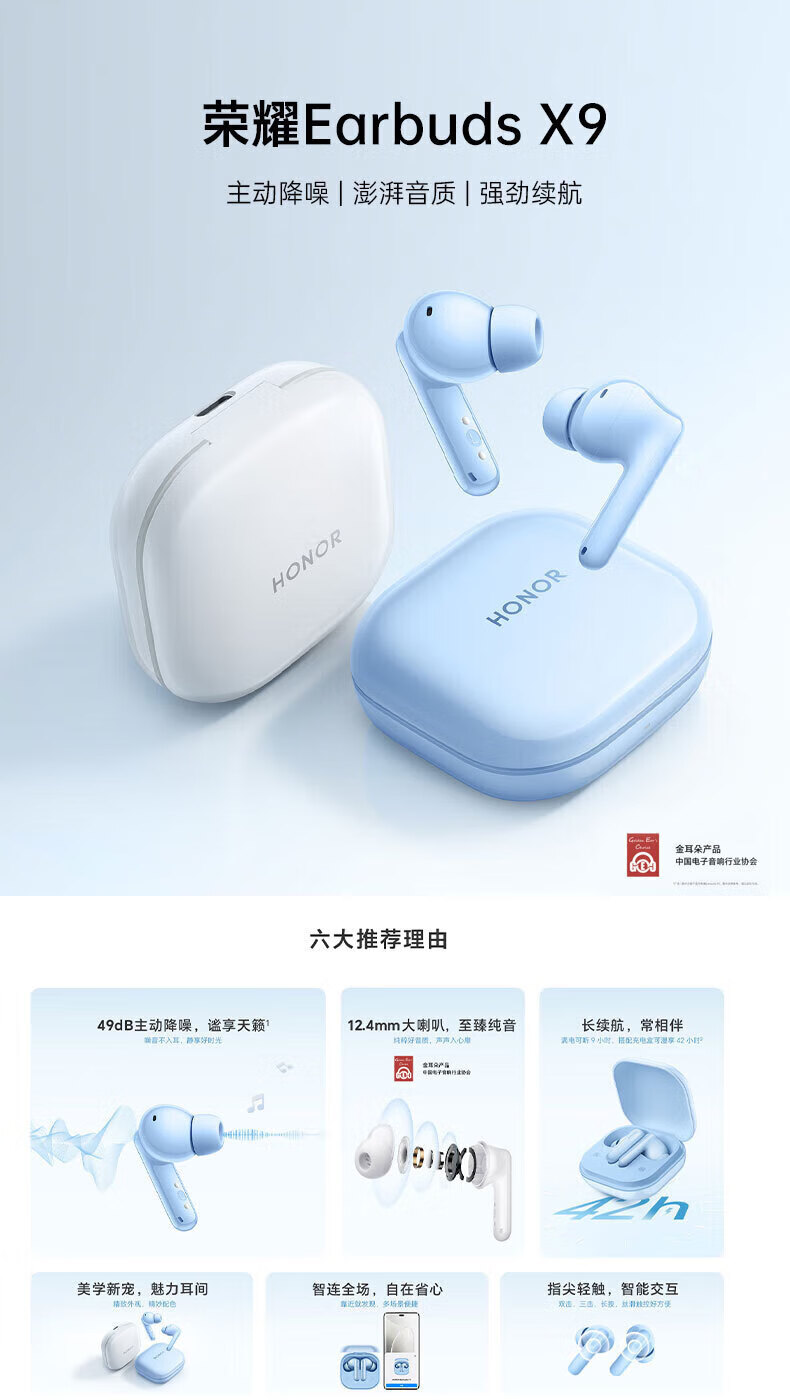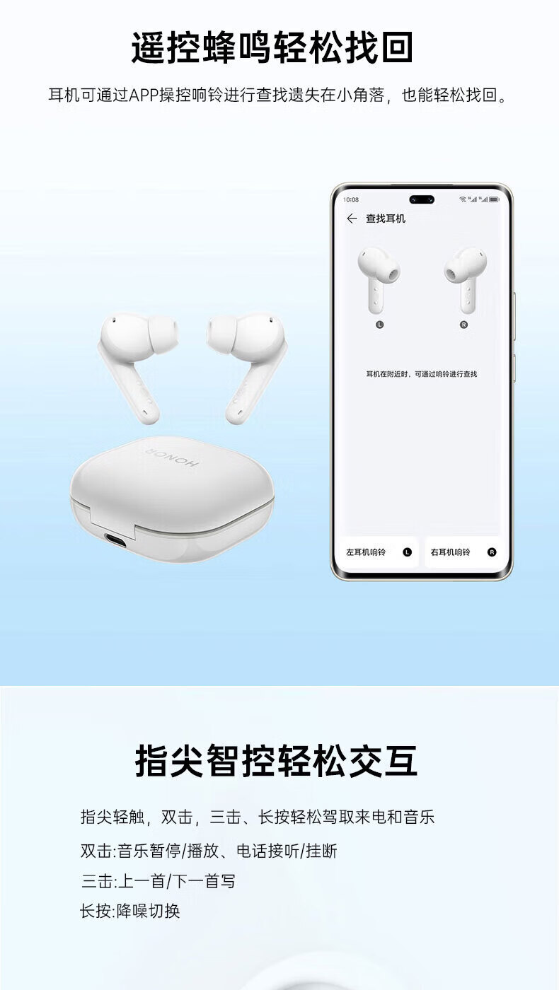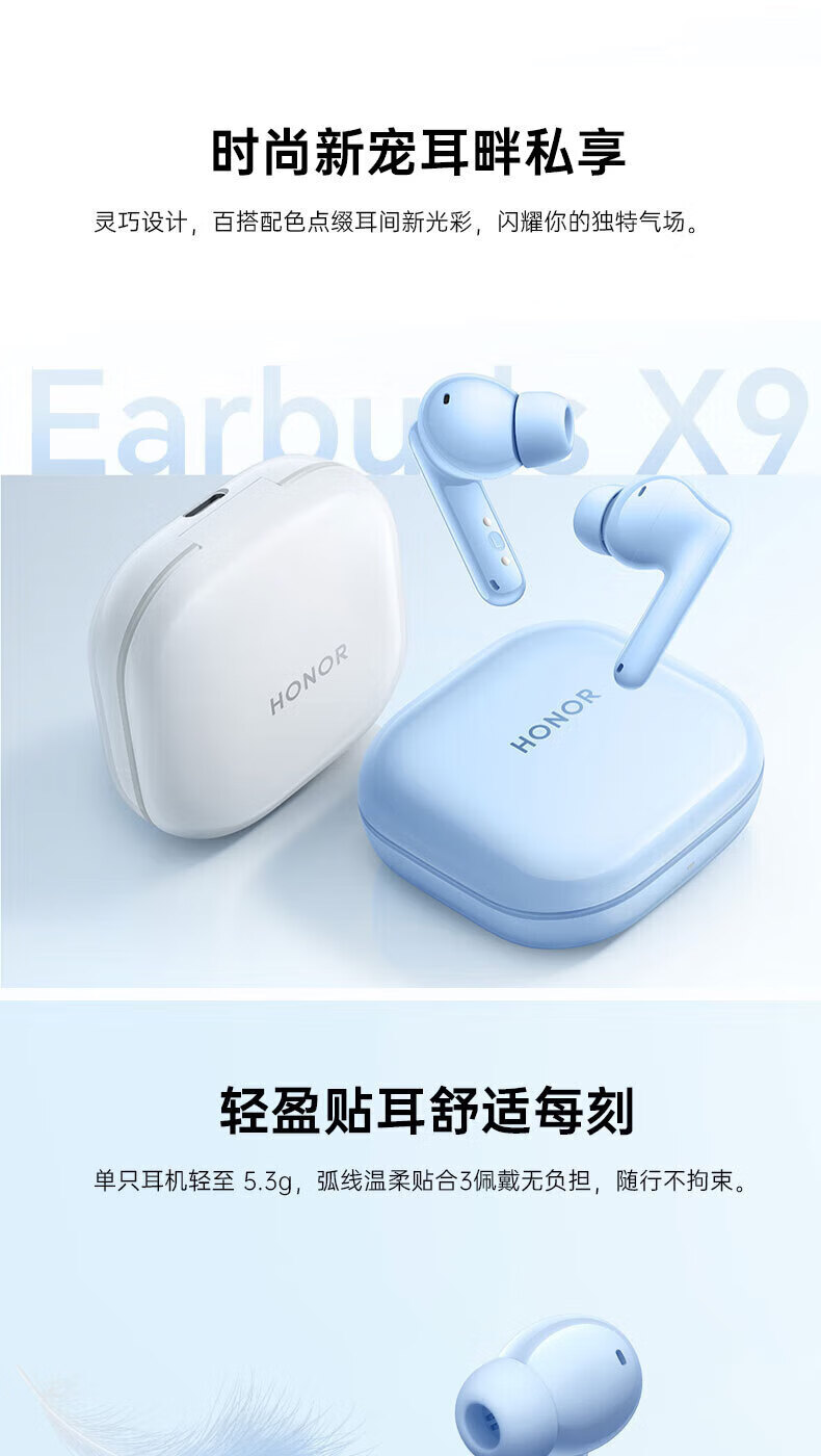 荣耀/honor Earbuds X9耳机/耳麦 蓝牙无线入耳式跑步主动智慧降噪 白色