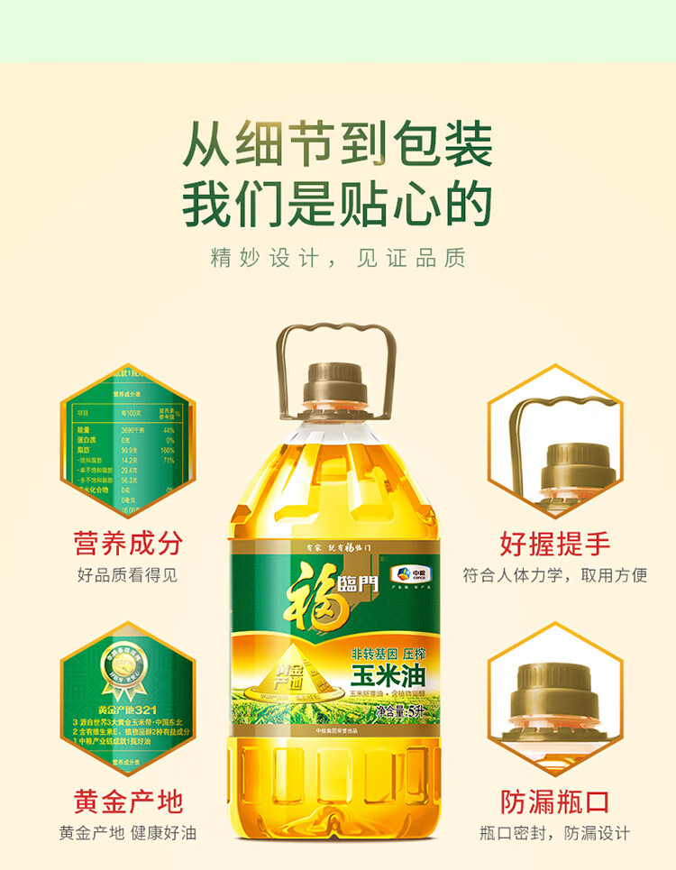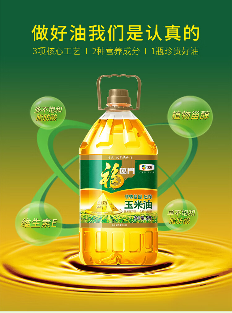 中粮 FZXL5 玉米油 非转基因压榨一级黄金产地玉米胚芽油5L(富含植物甾醇)