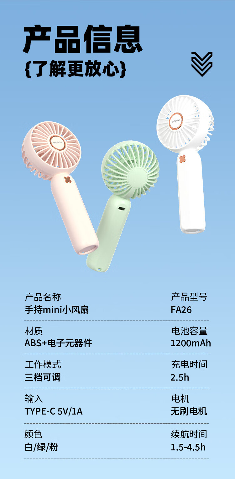 沃品/WOPOW FA26 风扇 持迷你小型随身便携式usb充电 粉色